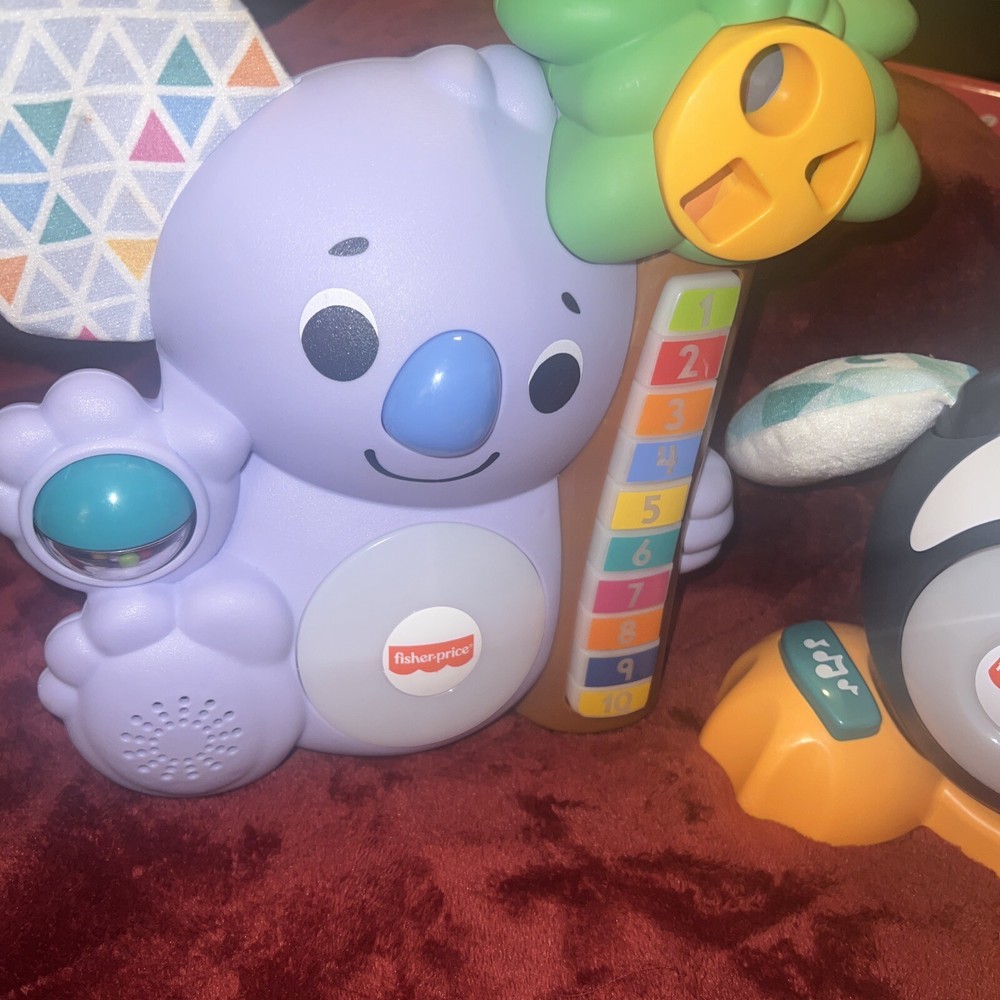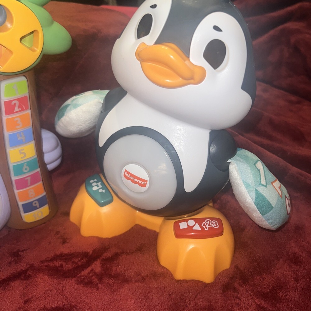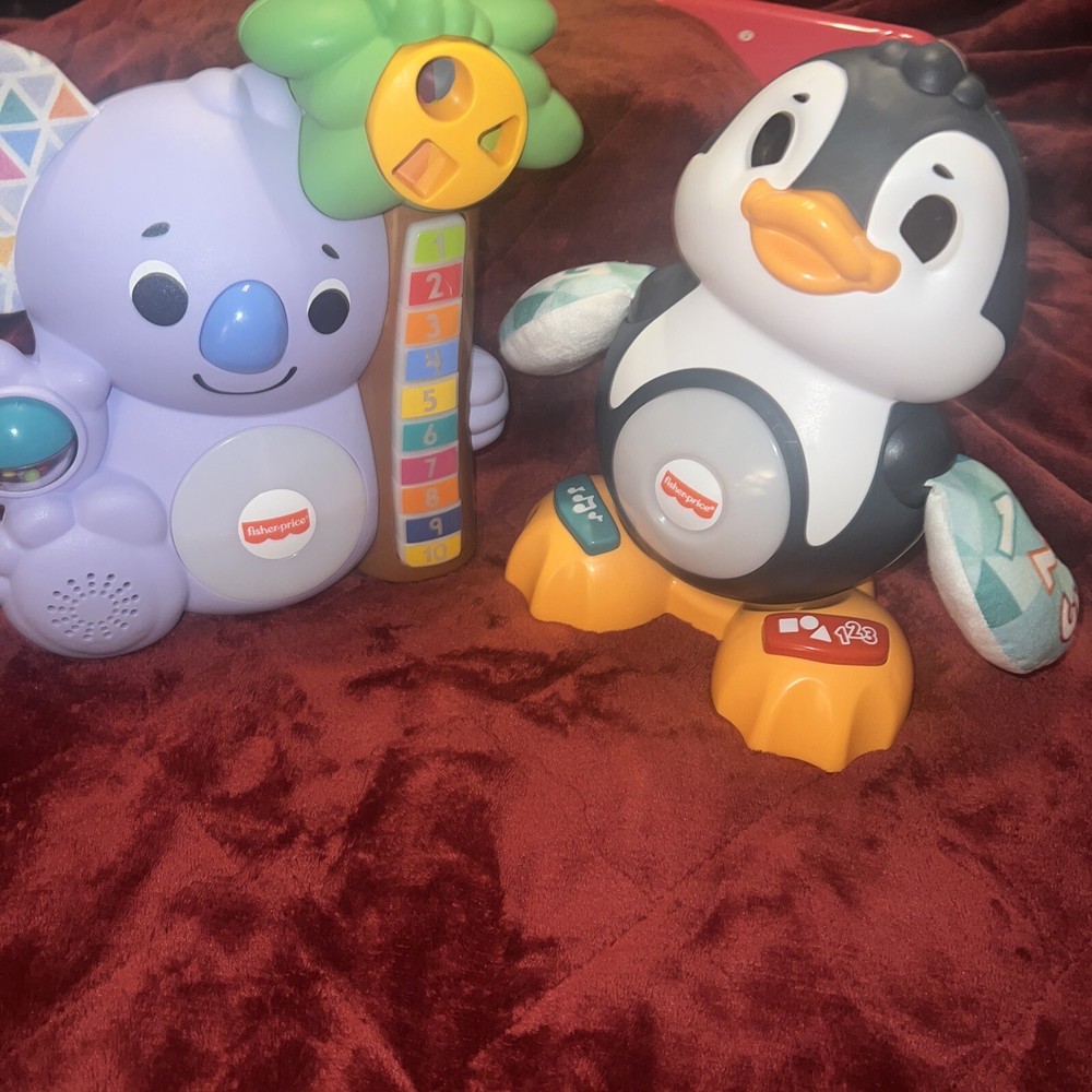 This lot includes two interactive educational toys from Fisher-Price: a koala and a penguin. Both toys are electronic and designed to help children learn. The koala features fun songs and phrases that teach numbers, letters, and shapes, while the penguin offers interactive play with lights and sounds. These toys are ideal for young girls who are beginning to explore the world around them. The Fisher-Price toys in this lot are perfect for parents who want their children to learn while they play. The koala and penguin are both in good working order and have been gently used. They are ideal for babies and toddlers who are starting to develop their cognitive and motor skills. This lot is a great addition to any child's toy collection and will provide hours of fun and learning.