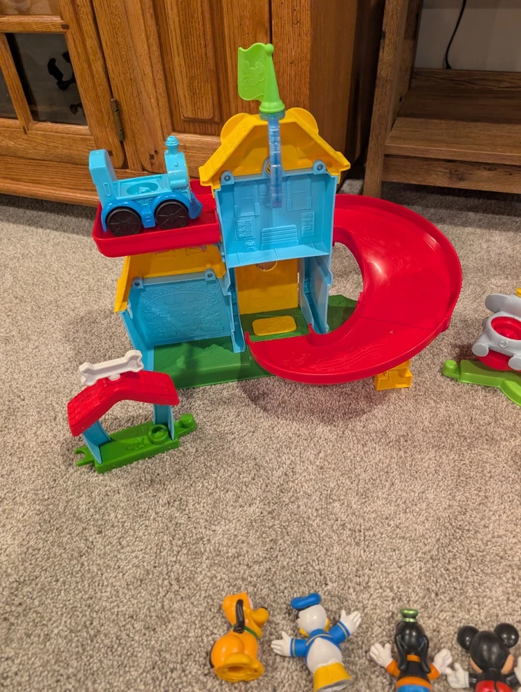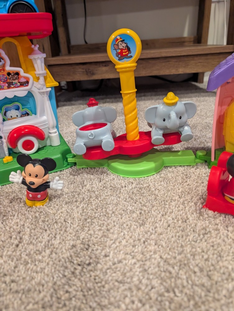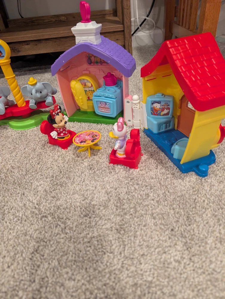 The Fisher-Price Little People Day at Disney/Mickey And Minnie house is a fun and interactive toy set designed for children aged 3-4 years. Featuring beloved characters from the Mickey Mouse & Friends family, this set allows kids to engage in imaginative play and create their own Disney adventures. With the trusted Fisher-Price brand behind it, this toy promises quality and entertainment for young children who love Mickey and Minnie. includes, Mickey, Minnie, Pluto, Donald Duck, Daisy, and Goofy. Sound works!