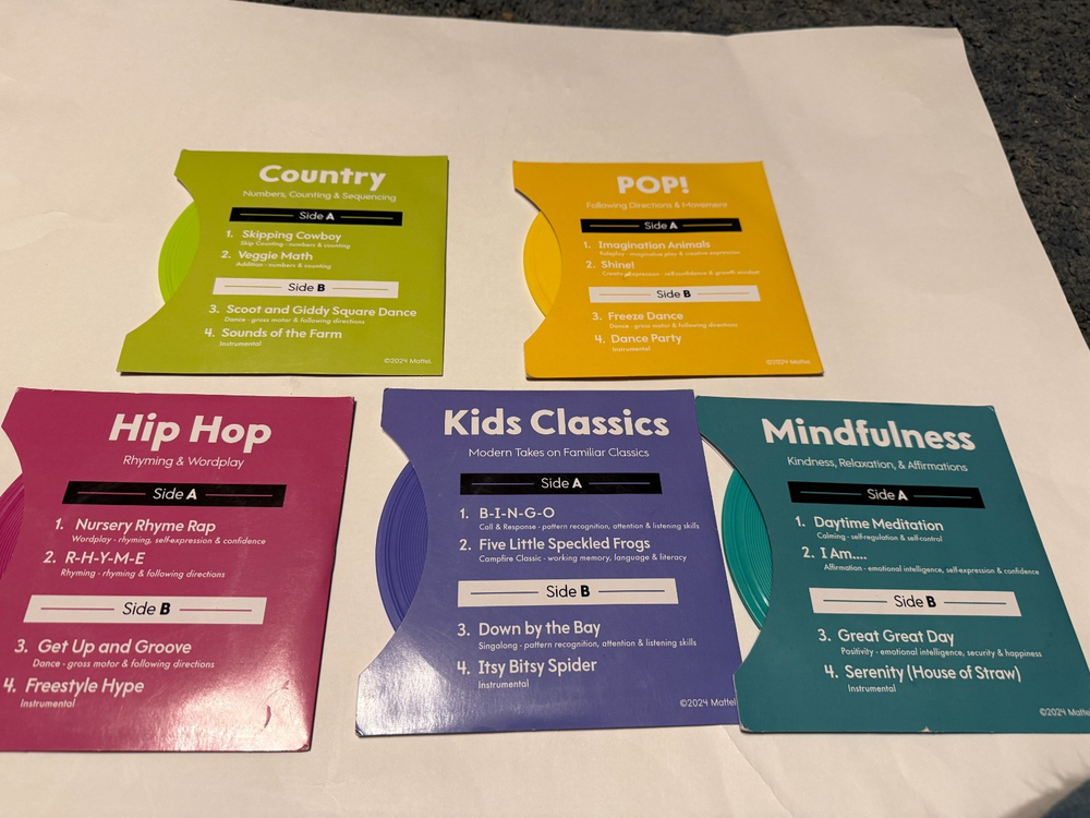 The Fisher-Price Rockin’ Record Player is a delightful musical toy that encourages imaginative play in children. With a turntable that spins to the tune of classic nursery rhymes and five colorful records to choose from, little ones can enjoy hours of fun as they learn to place the record arm into the groove to hear songs and use the knob to adjust the volume. Designed to bring a smile to every milestone, it's perfect for fostering independence and creativity in your little one's musical journey.
