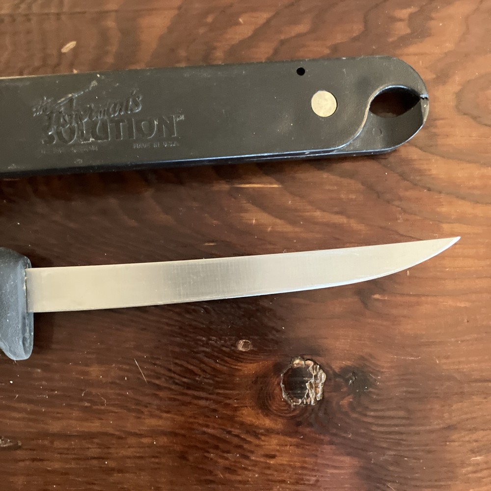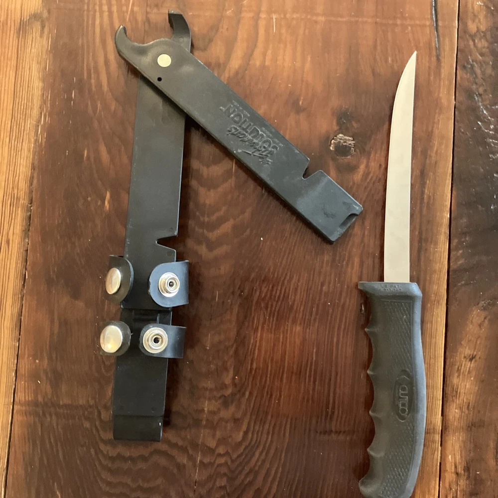 The Fisherman’s Solution Fillet Knife by Cutco is a high-quality, stainless steel knife made in the USA. It features a convenient belt clip for easy access while fishing. This unisex knife is designed specifically for fishing enthusiasts and includes a sharpener and sheath for added convenience. Perfect for outdoor adventures, this knife is a must-have for any angler looking for a reliable and durable tool to help with their catches.