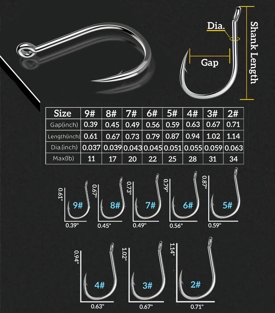 Fishing Hooks Set for Freshwater and Saltwater - Bulk Worm & Catfish Hooks LARGE QUANTITY: The Fishing hook set include 8 sizes hooks(9# to 2#, 100pcs for each size,total 800pcs), which are separated by a compartmentalized plastic box. There are so many sizes and numbers of hooks that you can choose hooks for different sized target fish in a variety of environments. And it can be replaced quickly after the line is broken to ensure that the joy of fishing continues. STRONG & DURABLE:Fish hooks are forged from new 82A high carbon steel material, which has higher strength, tensile force, elasticity, hardness and abrasion resistant. It also has excellent corrosion resistance and can be used for a long time in both freshwater and saltwater. PRACTICALITY: Fish hook with ringed eye (makes it easier for you to fasten the hook), flat hook body (higher strength, won't be straightened), and sharp point & barb (easier to pierce the fish mouth and less Let the fish escape). These will reduce your fishing troubles and multiply the fun. UNIVERSAL: Bulk fishing hooks are suitable for a variety of rigs and baits, such as artificial lures, worms, corns, live baits.A box of hooks to experience all kinds of fishing fun. NOTE:The hook is sharp, please be careful when using it, and keep it away from children. The data is measured manually, and there may be some errors. If you have any questions or suggestions on receiving the hook, please feel free to us to help you with the ending. LARGE QUANTITY: The Fishing hook set include 8 different hooks of different sizes (9# to 2#, 100pcs for each size,total 800pcs), which are separated by a compartmentalized plastic box. There are so many sizes and numbers of hooks that you can choose hooks for different sized target fish in a variety of environments. And it can be replaced quickly after the line is broken to ensure that the joy of fishing continues. STRONG & DURABLE: Fish hooks are forged from new 82A high carbon steel material, which has higher strength, tensile force, elasticity, hardness and abrasion resistant. It also has excellent corrosion resistance and can be used for a long time in both freshwater and saltwater. PRACTICALITY: Fish hook with ringed eye (makes it easier for you to fasten the hook), flat hook body (higher strength, won't be straightened), and sharp point & barb (easier to pierce the fish mouth and less Let the fish escape). These will reduce your fishing troubles and multiply the fun. UNIVERSAL: Bulk fishing hooks are suitable for a variety of rigs and baits, such as artificial lures, worms, corns, live baits.A box of hooks to experience all kinds of fishing fun. NOTE: The hook is sharp, please be careful when using it, and keep it away from children. The data is measured manually, and there may be some errors. If you have any questions or suggestions on receiving the hook, please feel free to us to help you with the ending. Shipping We offer FREE shipping on all orders! We ship within Three business days of payment, usually sooner. We use a selection of shipping services such as UPS, FedEx, USPS etc. We only ship to the lower 48 states, no APO/FPO addresses or PO Boxes allowed. Local pickups and combined shipping options are not provided at this time. Return You can return a product for up to 30 days from the date you purchased it. Any product you return must be in the same condition you received it and in the original packaging. Please keep the receipt. Payment We accept payment by any of the following methods: PayPal Please pay as soon as possible after winning an auction, as that will allow us to post your item to you sooner! Feedback Customer satisfaction is very important to us. If you have any problem with your order, please contact us and we will do our best to make you satisfied. Contact Us If you have any queries, please contact us via ebay. We usually respond within 24 hours on weekdays. Please visit our eBay store to check out other items for sale! Thank you for shopping at our store.