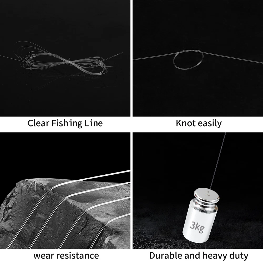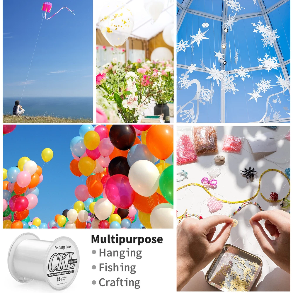 Fishing Wire Value Pack – long enough for party supplies to decoration and hanging ornaments Strong and Durable Material – The fishing wire for hanging made of premium nylon material, flexible and durable, with supports up to 40 pounds, sturdy to hang variety decorations and not easy to break Clear Hanging Wire – This fishing wire for balloons is thin and transparent, invisible in direct light or against a white background. Perfect for hanging balloons, garlands, party decorations, hang ornaments and more Convenient to Store - Clear fishing string is winding in the plastic roller to keep the clear twine neat and ready to use when you remove the cover Wide Application – This thin fishing line is suitable for various craft projects, beading, sewing, quilting, jewelry making and outdoor or indoor hanging decorations Package :1 PCS Fishing Line