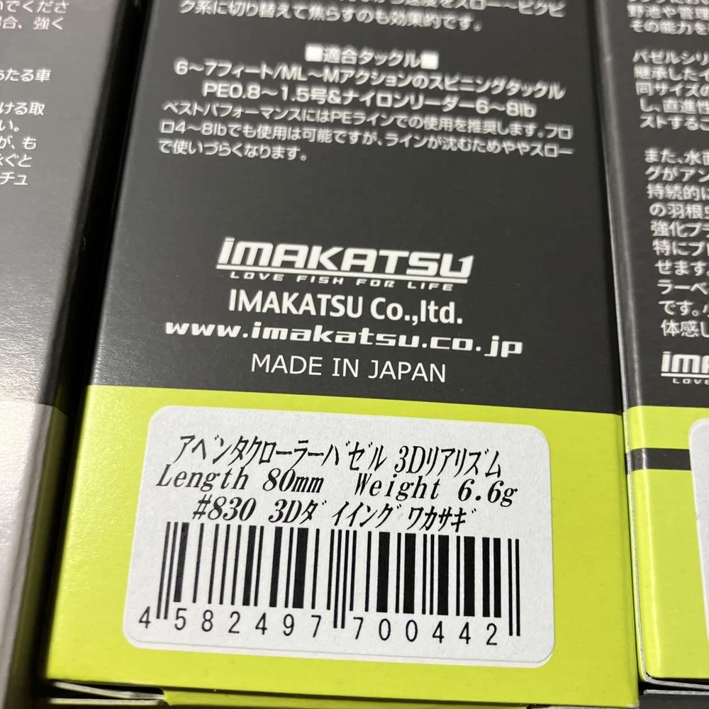 Item Title Fishing Lure Imakatsu Aventa Crawler Bazel Die Chibi Size 3 Payment Supports managed payments Please pay within 5 days after auction is finished. About Us We are located in Japan. It's our pleasure to make you happy by proposing our recommend item. If you have any questions or request about items, please feel free to ask us. International Buyers - Please Note: -Import duties, taxes, and charges are not included in the item price or shipping charges. These charges are the buyer's responsibility. -Please check with your country's customs office to determine what these additional costs will be prior to bidding/buying. -These charges are normally collected by the delivering freight (shipping) company or when you pick the item up - do not confuse them for additional shipping charges. -We do not mark merchandise values below value or mark items as - gifts - The US and International government regulations prohibit such behavior. Thank you for your understanding.