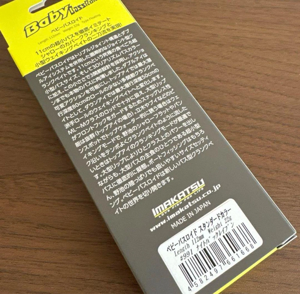 Item Title Fishing Lure Imakatsu Baby Bath Loid Night Back Laven Payment Supports managed payments Please pay within 5 days after auction is finished. About Us We are located in Japan. It's our pleasure to make you happy by proposing our recommend item. If you have any questions or request about items, please feel free to ask us. International Buyers - Please Note: -Import duties, taxes, and charges are not included in the item price or shipping charges. These charges are the buyer's responsibility. -Please check with your country's customs office to determine what these additional costs will be prior to bidding/buying. -These charges are normally collected by the delivering freight (shipping) company or when you pick the item up - do not confuse them for additional shipping charges. -We do not mark merchandise values below value or mark items as - gifts - The US and International government regulations prohibit such behavior. Thank you for your understanding.