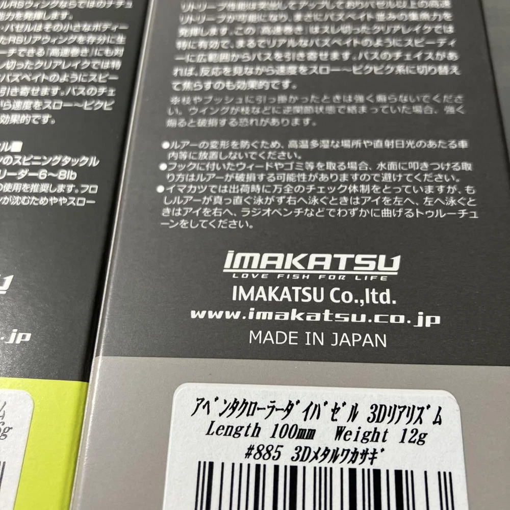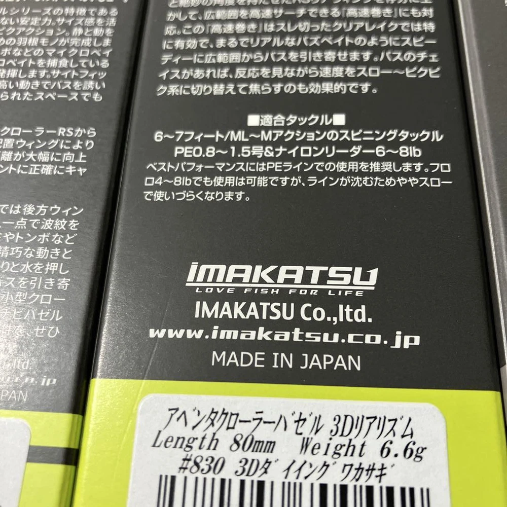 Item Title Fishing Lure Imakatsu Bazelle Aventa Crawler Chibi Die Payment Supports managed payments Please pay within 5 days after auction is finished. About Us We are located in Japan. It's our pleasure to make you happy by proposing our recommend item. If you have any questions or request about items, please feel free to ask us. International Buyers - Please Note: -Import duties, taxes, and charges are not included in the item price or shipping charges. These charges are the buyer's responsibility. -Please check with your country's customs office to determine what these additional costs will be prior to bidding/buying. -These charges are normally collected by the delivering freight (shipping) company or when you pick the item up - do not confuse them for additional shipping charges. -We do not mark merchandise values below value or mark items as - gifts - The US and International government regulations prohibit such behavior. Thank you for your understanding.