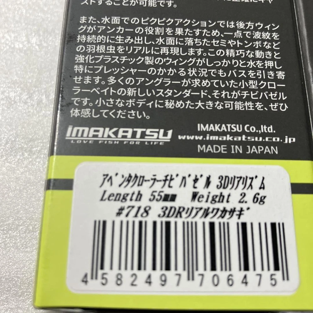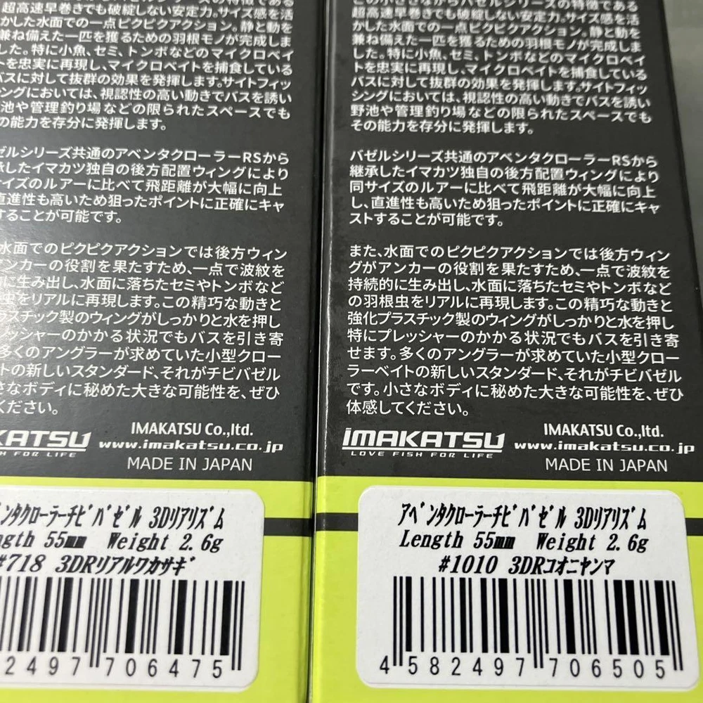 Item Title Fishing Lure Imakatsu Chibi Bazel Chiby Vazelle Avental Crawler Payment Supports managed payments Please pay within 5 days after auction is finished. About Us We are located in Japan. It's our pleasure to make you happy by proposing our recommend item. If you have any questions or request about items, please feel free to ask us. International Buyers - Please Note: -Import duties, taxes, and charges are not included in the item price or shipping charges. These charges are the buyer's responsibility. -Please check with your country's customs office to determine what these additional costs will be prior to bidding/buying. -These charges are normally collected by the delivering freight (shipping) company or when you pick the item up - do not confuse them for additional shipping charges. -We do not mark merchandise values below value or mark items as - gifts - The US and International government regulations prohibit such behavior. Thank you for your understanding.