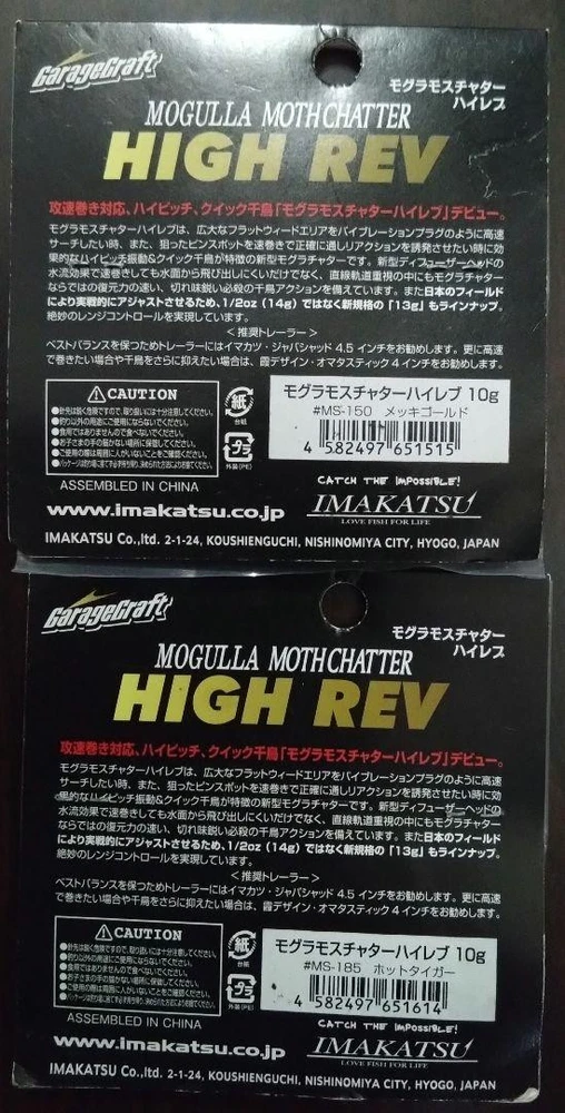 Item Title Fishing Lure Imakatsu Mole Chatter High Leve 10G Payment Supports managed payments Please pay within 5 days after auction is finished. About Us We are located in Japan. It's our pleasure to make you happy by proposing our recommend item. If you have any questions or request about items, please feel free to ask us. International Buyers - Please Note: -Import duties, taxes, and charges are not included in the item price or shipping charges. These charges are the buyer's responsibility. -Please check with your country's customs office to determine what these additional costs will be prior to bidding/buying. -These charges are normally collected by the delivering freight (shipping) company or when you pick the item up - do not confuse them for additional shipping charges. -We do not mark merchandise values below value or mark items as - gifts - The US and International government regulations prohibit such behavior. Thank you for your understanding.