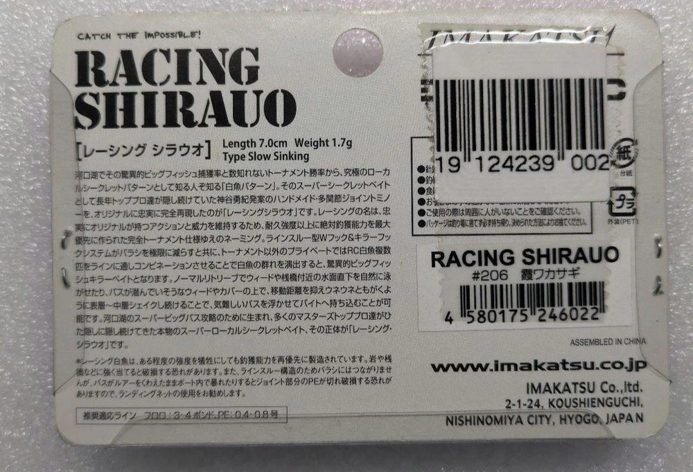 Item Title Fishing Lure Imakatsu Racing Icefish Haze Smelt Payment Supports managed payments Please pay within 5 days after auction is finished. About Us We are located in Japan. It's our pleasure to make you happy by proposing our recommend item. If you have any questions or request about items, please feel free to ask us. International Buyers - Please Note: -Import duties, taxes, and charges are not included in the item price or shipping charges. These charges are the buyer's responsibility. -Please check with your country's customs office to determine what these additional costs will be prior to bidding/buying. -These charges are normally collected by the delivering freight (shipping) company or when you pick the item up - do not confuse them for additional shipping charges. -We do not mark merchandise values below value or mark items as - gifts - The US and International government regulations prohibit such behavior. Thank you for your understanding.