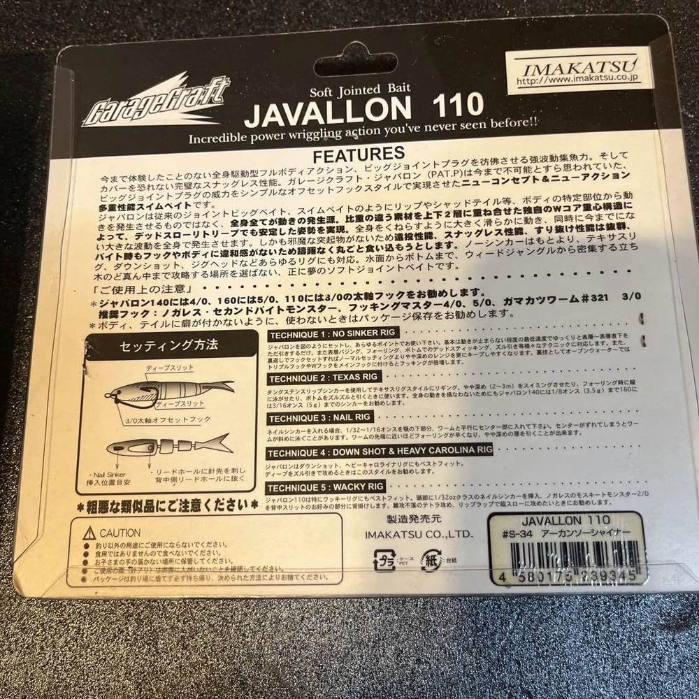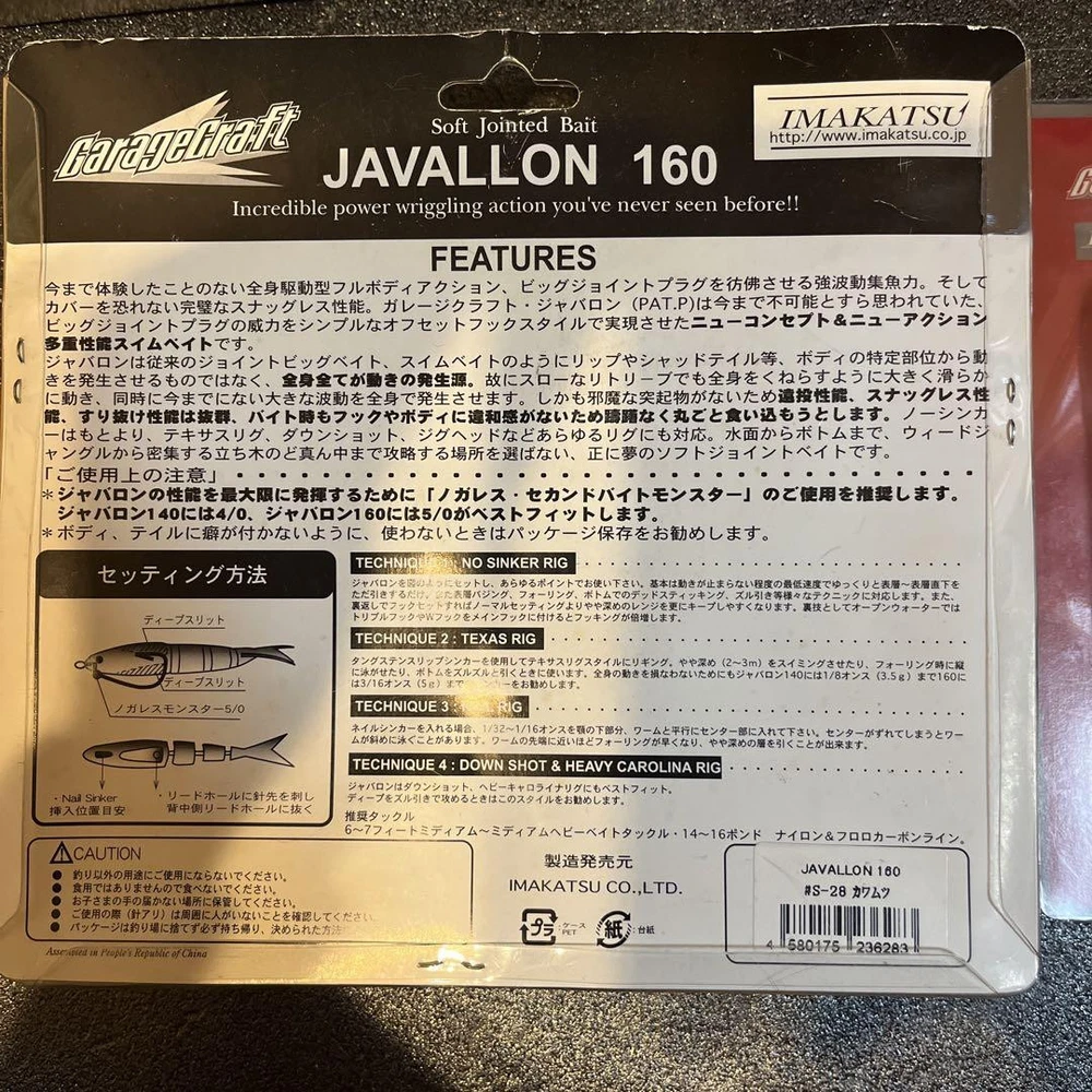 Item Title Fishing Lure Javalon Hard 160 110 Payment Supports managed payments Please pay within 5 days after auction is finished. About Us We are located in Japan. It's our pleasure to make you happy by proposing our recommend item. If you have any questions or request about items, please feel free to ask us. International Buyers - Please Note: -Import duties, taxes, and charges are not included in the item price or shipping charges. These charges are the buyer's responsibility. -Please check with your country's customs office to determine what these additional costs will be prior to bidding/buying. -These charges are normally collected by the delivering freight (shipping) company or when you pick the item up - do not confuse them for additional shipping charges. -We do not mark merchandise values below value or mark items as - gifts - The US and International government regulations prohibit such behavior. Thank you for your understanding.
