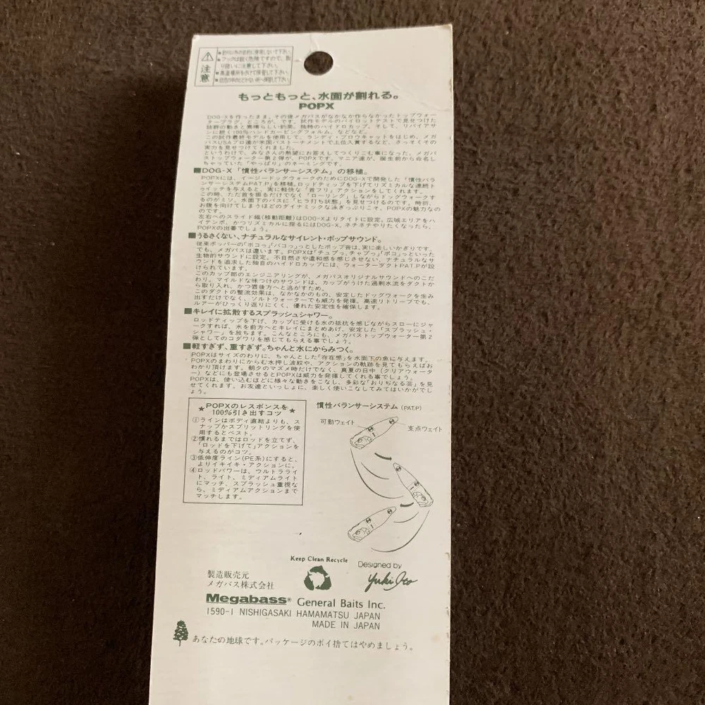 Item Title Fishing Lure Megabass 2000.Pop-X Payment Supports managed payments Please pay within 5 days after auction is finished. About Us We are located in Japan. It's our pleasure to make you happy by proposing our recommend item. If you have any questions or request about items, please feel free to ask us. International Buyers - Please Note: -Import duties, taxes, and charges are not included in the item price or shipping charges. These charges are the buyer's responsibility. -Please check with your country's customs office to determine what these additional costs will be prior to bidding/buying. -These charges are normally collected by the delivering freight (shipping) company or when you pick the item up - do not confuse them for additional shipping charges. -We do not mark merchandise values below value or mark items as - gifts - The US and International government regulations prohibit such behavior. Thank you for your understanding.