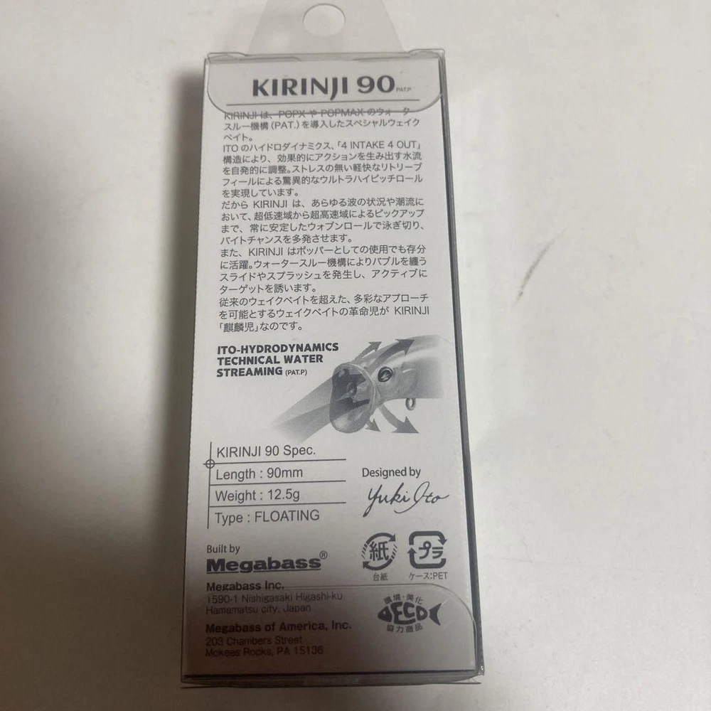 Item Title Fishing Lure Megabass Kirinji90 Wake Bait Payment Supports managed payments Please pay within 5 days after auction is finished. About Us We are located in Japan. It's our pleasure to make you happy by proposing our recommend item. If you have any questions or request about items, please feel free to ask us. International Buyers - Please Note: -Import duties, taxes, and charges are not included in the item price or shipping charges. These charges are the buyer's responsibility. -Please check with your country's customs office to determine what these additional costs will be prior to bidding/buying. -These charges are normally collected by the delivering freight (shipping) company or when you pick the item up - do not confuse them for additional shipping charges. -We do not mark merchandise values below value or mark items as - gifts - The US and International government regulations prohibit such behavior. Thank you for your understanding.