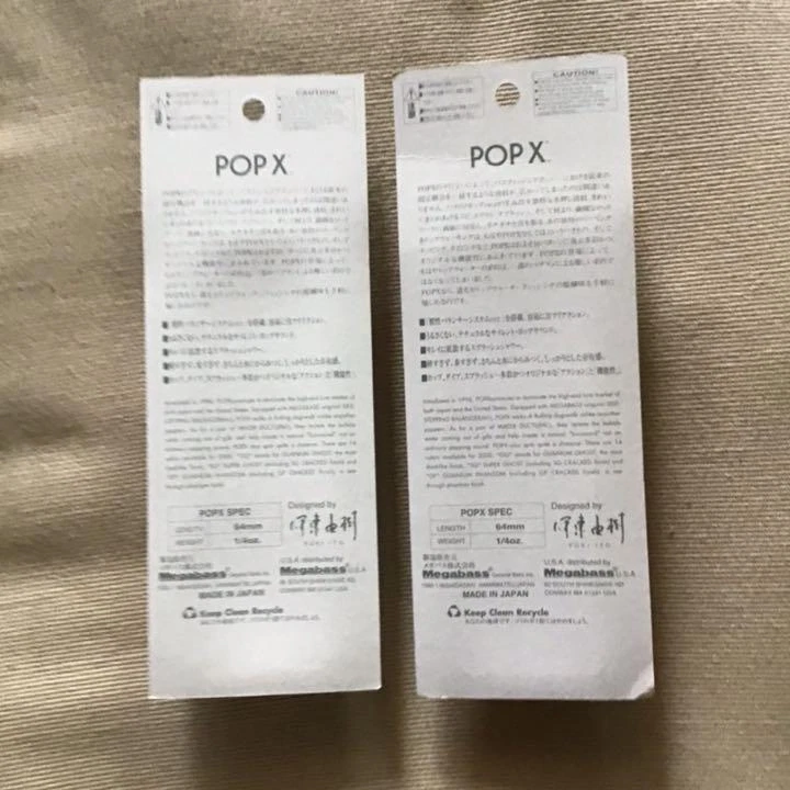 Item Title Fishing Lure Megabass Pop X Pop-X Payment Supports managed payments Please pay within 5 days after auction is finished. About Us We are located in Japan. It's our pleasure to make you happy by proposing our recommend item. If you have any questions or request about items, please feel free to ask us. International Buyers - Please Note: -Import duties, taxes, and charges are not included in the item price or shipping charges. These charges are the buyer's responsibility. -Please check with your country's customs office to determine what these additional costs will be prior to bidding/buying. -These charges are normally collected by the delivering freight (shipping) company or when you pick the item up - do not confuse them for additional shipping charges. -We do not mark merchandise values below value or mark items as - gifts - The US and International government regulations prohibit such behavior. Thank you for your understanding.