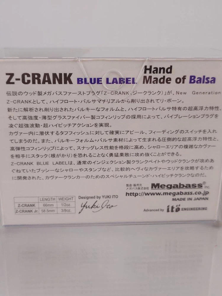 Item Title Fishing Lure Megabass Z-Crank Jr. Blue Balsa Limited Color Sakura Dazzler Payment Supports managed payments Please pay within 5 days after auction is finished. About Us We are located in Japan. It's our pleasure to make you happy by proposing our recommend item. If you have any questions or request about items, please feel free to ask us. International Buyers - Please Note: -Import duties, taxes, and charges are not included in the item price or shipping charges. These charges are the buyer's responsibility. -Please check with your country's customs office to determine what these additional costs will be prior to bidding/buying. -These charges are normally collected by the delivering freight (shipping) company or when you pick the item up - do not confuse them for additional shipping charges. -We do not mark merchandise values below value or mark items as - gifts - The US and International government regulations prohibit such behavior. Thank you for your understanding.