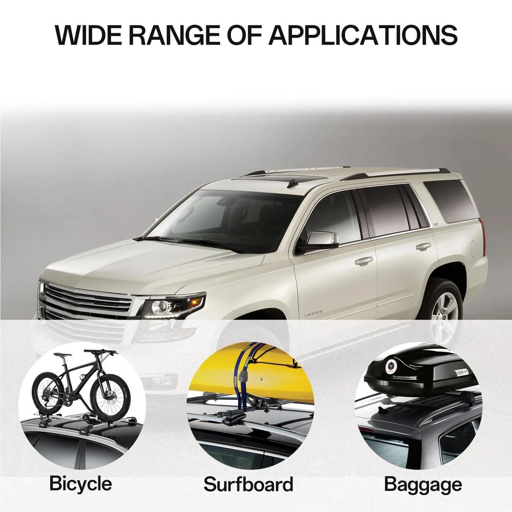 Store category Sign Up Now ! You may also like Product Description Bullet Points: Well Made: Equipped with high-quality materials, our Cross Rail Roof Rack is designed to provide unparalleled stability and durability, making it ideal for long-term use. The feet are made of excellent ABS and the sturdy aluminum alloy construction ensures that it won't deform easily. Easy Install: You can easily install and remove our Cross Rail Roof Rack without any drilling or cutting. It can be disassembled in minutes for quick setup. Aerodynamic Design: The Cross Rail Roof Rack's streamlined water drop shape effectively reduces wind resistant and noise, giving your vehicle a boost in performance. Experience a smoother and quieter ride. Versatile Use: Conveniently and securely transport your luggage, fishing rods and even extra large items like kayaks, canoes, snowboards, skis, and bicycles with ease. Perfect for outdoor enthusiasts and frequent travelers. with Installation Tool: Enhance your storage capacity with ease using the adjustable Cross Rail Roof Rack paired with compatible accessories. Simply use the provided crossbars, installation wrench, and follow the instructions to securely install. With no drilling or cutting required, it's easy to work with and effectively reduces wind resistant and noise. Plus, it's perfect for transporting your snowboards safely and securely. Specification: Material: aluminum alloy Product size: about 125cm/49.21 inches Packing List: 1 pair * Cross Rail Roof Rack Payment Delivery details Terms of sales About us Feedback & DSRs Payment Before you palce an order, please kindly make sure that you have a paypal account. We accept PAYPAL payment only. Payment should be completed within 2 days after auction closed, or unpaid dispute will be filed for an closing auction. An unpaid case will be filled after 4 days. Delivery details We ship to your eBay address. Each package will be shipped to US by UPS Regular Parcel with tracking number. Please check your shipping address carefully before checkout, it can't be changed if order completed. All items will be shipped within 1-2 business day upon receipt of payment.Orders placed on weekend will be shipped within 3 days. If you do not receive your item in 7-10 business days.please contact us immediately for further assistance. We will be responsible for any damages or losses incurred in the shipping process. About us We maintain high standards of excellence FIVE STAR and strive for 100% customer satisfaction! Positive Feedback is very important to us. We hope that you contact us immediately Before you give us neutral or negative feedback, so that we can satisfactorily address your concerns. We promise to offer the lowest price and high quality produce. Our working time: From Monday to Friday(9:30 am to 18:00pm), we don't working on holidays ,hope you can understand and know that , thank you. Please always talk to us via ebay Message. We appreciate your business and look forward to growing our e-Bay sales with satisfied customers. Feedback Contact us If you have any questions, please feel free to contact with us by ebay Message during our business hours ( 9:30a.m. to 5:30 p.m.), or email us through eBay, we will try our best to help you to resolve it. For any presale or after-sale questions,please do feel free to email us! Due to the time difference, each email will be replied within 1 working day,and weekend will be delayed a bit. Feedback