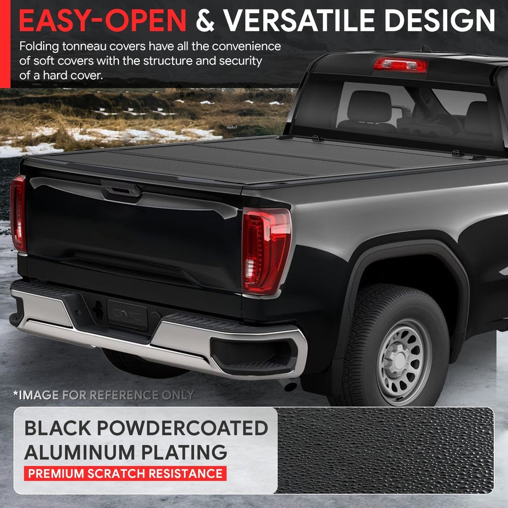 Fit 19-25 Silverado Sierra 5.8Ft Black Low Profile Tri Fold Hard Tonneau Cover