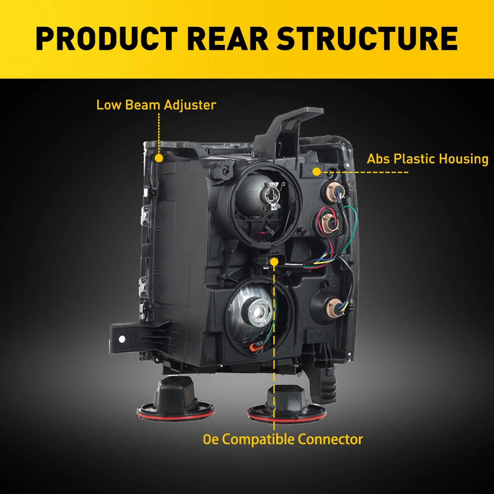Headlights Headlamps Fit For 2014-2015 Chevy Silverado 1500 models only Fit for: 2014-2015 Chevy Silverado 1500 models only (Fit 2014 New Body style models only; Does NOT fit HD models) Specifications: OE number: 20933724, 20933725, 20933722, 20933723, 23172782, 23172783 GM2502389, GM2503389, GM2502395, GM2503395, GM2502410 Material: ABS+PC (ABS Plastic Housing/Polycarbonate lens) Appearance color: 1.Housing Color: Black 2.Lens Color:Clear 3.Reflector Color:Amber The original bulb type: 1.Low beam:H1 2.High beam:9005 3.Turn signal light:7443 Fit 2014-15 Chevy Silverado 1500 Black Headlights Headlamps L+R Pairs 14-15 Headlights Headlamps Fit For 2014-2015 Chevy Silverado 1500 models only Fit for: 2014-2015 Chevy Silverado 1500 models only (Fit 2014 New Body style models only; Does NOT fit HD models) Specifications: OE number: 20933724, 20933725, 20933722, 20933723, 23172782, 23172783 GM2502389, GM2503389, GM2502395, GM2503395, GM2502410 Material: ABS+PC (ABS Plastic Housing/Polycarbonate lens) Appearance color: 1.Housing Color: Black 2.Lens Color:Clear 3.Reflector Color:Amber The original bulb type: 1.Low beam:H1 2.High beam:9005 3.Turn signal light:7443 4.Parking light:7443 Note: Projector √(include) DRL × (Not include) Bulb × (Not include) Features: *Easy to install: Direct replacement, drilling and cutting are not required. *Superior quality: Made of ABS and PC materials with toughness and heat resistance functions to ensure its long service life and durability. *Angle adjustment: Equipped with a headlamp Angle adjustment knob, you can adjust the best Angle of view through the knob. *Suggestion: 1.Please confirm the OE number before purchasing!!! 2.Professional installation is required!!! Packaging include: Headlights*2(Left+Right) Item Specifics Brand AUXITO Type Headlight Assembly Features Reflector Housing, Projector Housing Placement on Vehicle Left, Right, Front Housing Color Black Lens Color Clear Bulb Shape Code Use Stock Bulbs Manufacturer Part Number 20933724, 20933725, 20933722, 20933723, 23172782, 23172783 Interchange Part Number GM2502389, GM2503389, GM2502395, GM2503395, GM2502410 Fitment Type Performance/Custom Package Includes Driver & Passenger Side Headlights Shipping/Return Shipping Fee Free Shipping Within 48 States Bulbs Included No Certifications DOT, SAE Material ABS Plastic, Polycarbonate Lens Reflector Color Amber Low beam H1 High beam 9007 Turn signal light 7443 Parking light 7443 Payment Returns DESCRIPTION PAYMENT SHIPPING RETURN POLICY CONTACT US Shop Category Store Home LED Headlight ◈ H4 ◈ H13 LED Reverse Light ◈ T15/921/W16W LED License Plate Light LED Side Marker Light Car Parts & Accessories Tail Light assemblies Other Hot Item Picture New List Item 4pcs SUPER BRIGHT 9005+9006 Combo 40000LM LED Headlight Kit High Low Beam 6500K USD 64.99 SMOKE LEN For E46 BMW E60 E84 E83 LED Marker Side Light Blinker Signal Lamp Pair USD 17.99 For 2006-2010 Dodge Charger Factory Style Headlight Black Housing Amber Corner USD 89.99 2pcs H11 to Wiring H11 Harness Xenon HID Fog Headlight Conversion Fuse Adapter USD 10.99 Fits 2007-13 BMW 328i/xi 335i E93 Front Bumper Smoke Reflector Side Marker Light USD 17.99 Help & Info Payment Policy Shipping Policy Return Policy FAQ About Us Fit 2014-15 Chevy Silverado 1500 Black Headlights Headlamps L+R Pairs 14-15 Headlights Headlamps Fit For 2014-2015 Chevy Silverado 1500 models only Fit for: 2014-2015 Chevy Silverado 1500 models only (Fit 2014 New Body style models only; Does NOT fit HD models) Specifications: OE number: 20933724, 20933725, 20933722, 20933723, 23172782, 23172783 GM2502389, GM2503389, GM2502395, GM2503395, GM2502410 Material: ABS+PC (ABS Plastic Housing/Polycarbonate lens) Appearance color: 1.Housing Color: Black 2.Lens Color:Clear 3.Reflector Color:Amber The original bulb type: 1.Low beam:H1 2.High beam:9005 3.Turn signal light:7443 4.Parking light:7443 Note: Projector √(include) DRL × (Not include) Bulb × (Not include) Features: *Easy to install: Direct replacement, drilling and cutting are not required. *Superior quality: Made of ABS and PC materials with toughness and heat resistance functions to ensure its long service life and durability. *Angle adjustment: Equipped with a headlamp Angle adjustment knob, you can adjust the best Angle of view through the knob. *Suggestion: 1.Please confirm the OE number before purchasing!!! 2.Professional installation is required!!! Packaging include: Headlights*2(Left+Right) Payment Returns All rights reserved. On Dec 14, 2024 at 14:00:48 PST, seller added the following information: