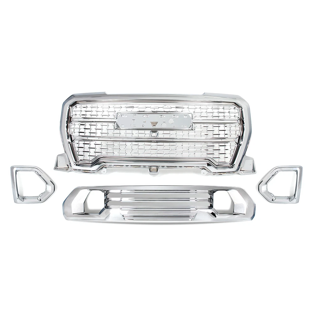 Fit 2019-2021 GMC Sierra 1500 Denali AT4 Front Bumper Grille Fog Lamp Bezel Trim We appreciate you place an order, If you are satisfied with the item and our total service, Please take a moment to leaving us a POSITIVE FEEDBACK and perfect " 5 STAR " scores, If you have any problem with your purchase,shipment,return/exchange,or any others, Please contact us firstly,so that we can satisfactorily address your concerns, We will give you our best item and service. Specification: Condition: 100% Brand New Color: Chrome Style: Denali Style Material: High Quality ABS Plastic Placement on Vehicle: Front,Upper,Lower,Left,Right Surface Finish: Painted Package Size:152*31*20cm(59.84"*12.20"*7.87") Gross Weight: 19.62LB (8.9KG) Features: - Easy install and durable use. - Great quality and great fitment. - 100% brand new and high quality guaranteed. - Strict quality control standards to build and test. - Useful,helpful and so practical. - Factory bolt-on fitment,no vehicle modifications are required. Fitment: Fit For GMC Sierra 1500 Denali 2019-2021 Fit For GMC Sierra 1500 AT4 2019-2021 Package Include: 4Pcs Front Grille&Fog Light Bezel Kit Note: -Please check the size measurement chart carefully before making payment. -Please allow 0.5-1 inch difference due to manual measurement.(1 inch=2.54cm) -The color of the actual items may slightly different from the listing images due to different computer screen, thanks for your understanding. -Instruction is not included. -Professional Installation Recommended. 1.We Accept Payment Through Paypal Only. 2.The eBay members must fulfill the requirement.(PayPal verified and confirmed address; the account holder must be the receiver). 3.Please complete your payment within 2 days after the item is won.If you have difficulty completing your payment within the required time, please contact us.Non-Pay Dispute will be filed against your account after the 2th day. 4.Our price does not include Duties,Value Added Taxes,Customs Clearance Fees,and other charges. These charges are the buyer's responsibility.Please check with your country's customs office to determine what these additional costs will be before bidding/buying. 5.The buyer needs to pay for the above fees in case that occurred for certain goods.If the parcel returns back to us due to the buyer refuse to pay those fees,we would not send the parcel again unless the buyer completes those fees and pay all the return and resend cost.The buyer can not cancel the order or request a refund due to this reason. 1.Free Shipping with FedEx/UPS/USPS to the Mainland 48 states ONLY 2.PO Box,AK/HI/PR and APO/FPO address will not be accepted. 3.Package will be shipped to your eBay shipping address within 48 hours(except for weekend and public holiday) after payment is cleared. 4.Payment cleared/received on Friday will be shipped on the next business days (Monday or Tuesday) 5.Order is typically shipped in 1-2 business day after payment is completed. Shipping confirmation with tracking number will be sent to your eBay email address when your order is shipped. Please note that we do not ship orders on Saturdays,Sundays,and national holidays. 6.All our items will be shipped to the address you submit, please confirm your address on before you bid or purchase. 7.Shipping time may vary depends on your area. Delivery may be delayed due to extreme weather or special circumstances. Please wait patiently. -All items sold by us are being described to the best of our abilities,as accurate as possible,and with utmost conscientiousness on our part.However,to avoid any potential oversights,we respectfully request your assistance in helping us to make this a mutually satisfactory transaction by THOROUGHLY reviewing item description and photos,and asking all questions PRIOR TO BIDDING. -We stand behind the quality of all of our products.All products are double inspected before stocking and dispatching.However,sometimes mistake may slip by and the product may get damaged during the process of delivery.If such trouble occurs to you,please take a minute to refer to the following instruction. -If the package arrives at your location with obvious shipping damage (including broken envelop,empty package and etc),please refuse the shipment. -If you find the item is defective after you accept the shipment,please save everything that is attached in the package,including all the documents,and contact us immediately,either through eBay message or email address. -You should state your item ID,item title and what the damage is clearly in your email.And please be advised that digital photos must be attached to the email you send. -And please bear in mind that you should contact us within 3 days since the day you receive the package,or it will be your own responsibility to take the lost of the defective item. Welcome to our Ebay store. We are professional of selling premium quality auto parts. All kinds of modified and aftermarket body parts for BMW,Benz,Ford,Audi,Jeep,Chevrolet and so on. For more details,please contact us. Thank you for your business. Certain images and/or photos used in this template are the copyrighted property of Macmillan digital publishing USA and are used with permission. Specification: Condition: 100% Brand New Color: Chrome Style: Denali Style Material: High Quality ABS Plastic Placement on Vehicle: Front,Upper,Lower,Left,Right Surface Finish: Painted Package Size:152*31*20cm(59.84"*12.20"*7.87") Gross Weight: 19.62LB (8.9KG) Features: - Easy install and durable use. - Great quality and great fitment. - 100% brand new and high quality guaranteed. - Strict quality control standards to build and test. - Useful,helpful and so practical. - Factory bolt-on fitment,no vehicle modifications are required. Fitment: Fit For GMC Sierra 1500 Denali 2019-2021 Fit For GMC Sierra 1500 AT4 2019-2021 Package Include: 4Pcs Front Grille&Fog Light Bezel Kit Note: -Please check the size measurement chart carefully before making payment. -Please allow 0.5