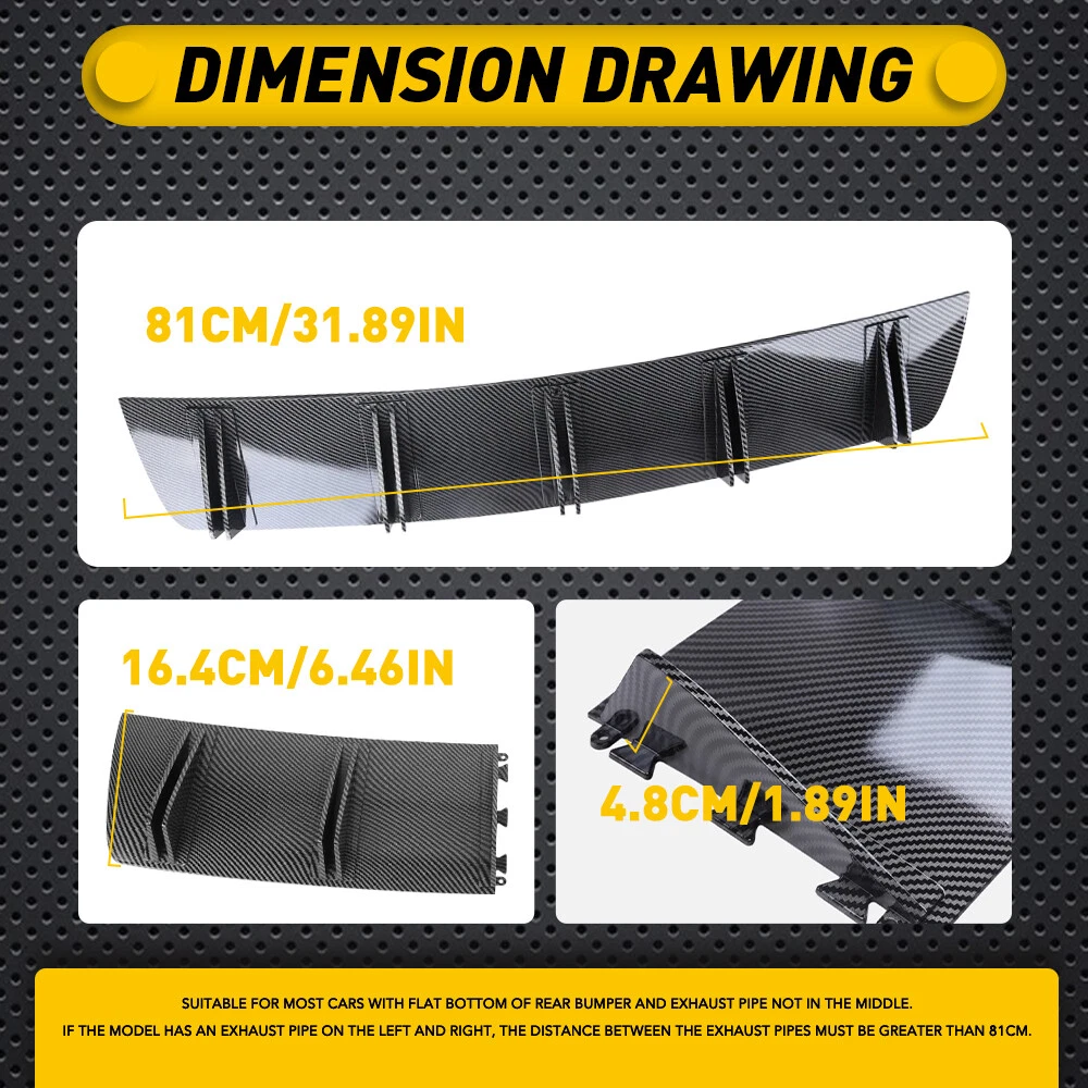 Fit for: Suitable for most cars with flat bottom of rear bumper and exhaust pipe not in the middle. If the model has an exhaust pipe on the left and right, the distance between the exhaust pipes must be greater than 81cm. Specifications: Product Material: ABS Color: Carbon fiber (as pictures show) Placement on Vehicle: Lower, rear Features: 銆怰educe Air Resistance???/span> This shark fin diffuser designed to increase a vehicle's aerodynamic performance and improve the stability of vehicle during fast driving. 銆怑xcellent Appearance???/span> Fit Cadillac CTS XTS Carbon Fiber Rear Diffuser Bumper Fins Lip Splitter Spoiler Fit for: Suitable for most cars with flat bottom of rear bumper and exhaust pipe not in the middle. If the model has an exhaust pipe on the left and right, the distance between the exhaust pipes must be greater than 81cm. Specifications: Product Material: ABS Color: Carbon fiber (as pictures show) Placement on Vehicle: Lower, rear Features: 銆怰educe Air Resistance???/span> This shark fin diffuser designed to increase a vehicle's aerodynamic performance and improve the stability of vehicle during fast driving. 銆怑xcellent Appearance???/span> Shark fin and clean lines design with beautiful appearance to decorate your car, which gives your vehicle a more aggressive racing look. 銆怉BS Material???/strong> Made of ABS material with high-quality, waterproof, durable functions and will not easy to break. 銆怳niversal Fit???/span> Universal fit for most cars, please measure the size before purchasing. Note: Please confirm the size and make sure that there is enough space to install before purchasing!!! Professional installation is required. Packaging Include: 1 x Rear Shark Fin Bumper Diffuser 1 x Screws kit 1 x Double sided adhesive tape Item Specifics Material ABS Mounting Hardware Included Yes Placement on Vehicle Lower Rear Brand AUXITO Color Carbon fiber (as pictures show) Type Rear Bumper Lip Warranty 5 Years Number of Pieces 1 Fitment Type Direct Replacement Attachment Method Screws Payment We accept PayPal via eBay Secure Check-Out only. Immediate payment needs to be processed for items with Add to Cart option so that any promotional discounts can be applied to your order immediately. Shipping 1 .We do everything we can to ship your orders out as soon as possible. 2. Shipping and Handling: We process orders within two business day after the payment was clear. Returns Our 30-day Satisfaction Guarantee assures our customers that they will receive all orders promptly and exactly as described. In addition, it allows customers to return new and unused products in their original factory condition for any reason within 30 days from the date of purchase. 1. All returns must be pre-approved by AUXITO and have a return merchandise authorization(RMA) number. Unauthorized returns will not be accepted. 2. Buyers are responsible for appropriate packing, returning shipping cost, insurance and returning the item in "new" condition. Used items will not be accepted for return. 3. We will replace the returning item with an identical item, issue a full store credit or a full refund. Contact Us Our Working Time:(GMT+8)Monday to Friday,9:00-18:00. For inquires and customer support, please send your email via ebay email system. All emails will be responded to within 24 hours during business days. Feedbacks 1. We appreciate your business and strived to improve our customer service and our commitment to quality. 2. We will leave a positive feedback immediately after payment is received. We appreciate a positive feedback as much as you do. 3. If for some reason there is any issue with the purchase, please contact us prior to leaving feedback, and we will be glad to work with you to have it resolved. DESCRIPTION PAYMENT SHIPPING RETURN POLICY CONTACT US Hot Item Fit For 2015-2019 Hyundai Center Light Gray Sonata Armrest Console Lid Cover USD 12.34 Waterproof Motorcycle Handlebar Dual USB Phone Charger Cigarette Lighter Socket USD 13.29 4" Red Truck Long Performance High Flow Cold Air Intake Cone Dry Filter Cotton USD 27.54 146PCS For Toyota RAV4 Fender Door Hood Bumper Trim Clip Retainer Fastener Kit USD 10.92 190 PCS Bumper Fender Moulding Side Garnish Grille Retainer Clip ABS Various USD 10.44 Hot Item 190 PCS Bumper Fender Moulding Side Garnish Grille Retainer Clip ABS Various USD 10.44 Fit For 2015-2019 Hyundai Center Light Gray Sonata Armrest Console Lid Cover USD 12.34 Waterproof Motorcycle Handlebar Dual USB Phone Charger Cigarette Lighter Socket USD 13.29 4" Red Truck Long Performance High Flow Cold Air Intake Cone Dry Filter Cotton USD 27.54 146PCS For Toyota RAV4 Fender Door Hood Bumper Trim Clip Retainer Fastener Kit USD 10.92 Fit Cadillac CTS XTS Carbon Fiber Rear Diffuser Bumper Fins Lip Splitter Spoiler Fit for: Suitable for most cars with flat bottom of rear bumper and exhaust pipe not in the middle. If the model has an exhaust pipe on the left and right, the distance between the exhaust pipes must be greater than 81cm. Specifications: Product Material: ABS Color: Carbon fiber (as pictures show) Placement on Vehicle: Lower, rear Features: 銆怰educe Air Resistance???/span> This shark fin diffuser designed to increase a vehicle's aerodynamic performance and improve the stability of vehicle during fast driving. 銆怑xcellent Appearance???/span> Shark fin and clean lines design with beautiful appearance to decorate your car, which gives your vehicle a more aggressive racing look. 銆怉BS Material???/strong> Made of ABS material with high-quality, waterproof, durable functions and will not easy to break. 銆怳niversal Fit???/span> Universal fit for most cars, please measure the size before purchasing. Note: Please confirm the size and make sure that there is enough space to install before purchasing!!! Professional installation is required. Packaging Include: 1 x Rear Shark Fin Bumper Diffuser 1 x Screws kit 1 x Double sided adhesive tape Payment We accept PayPal via 