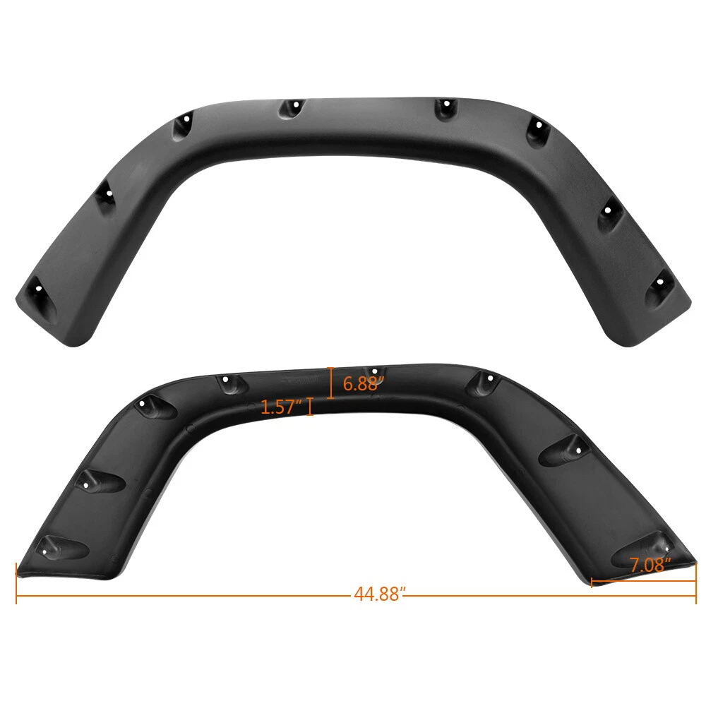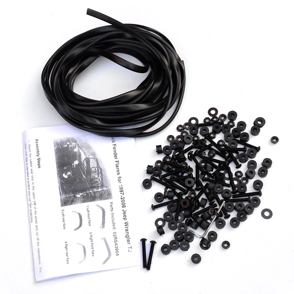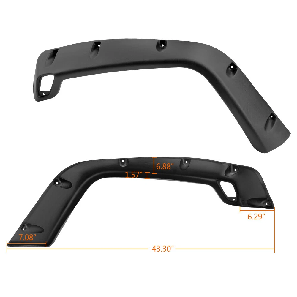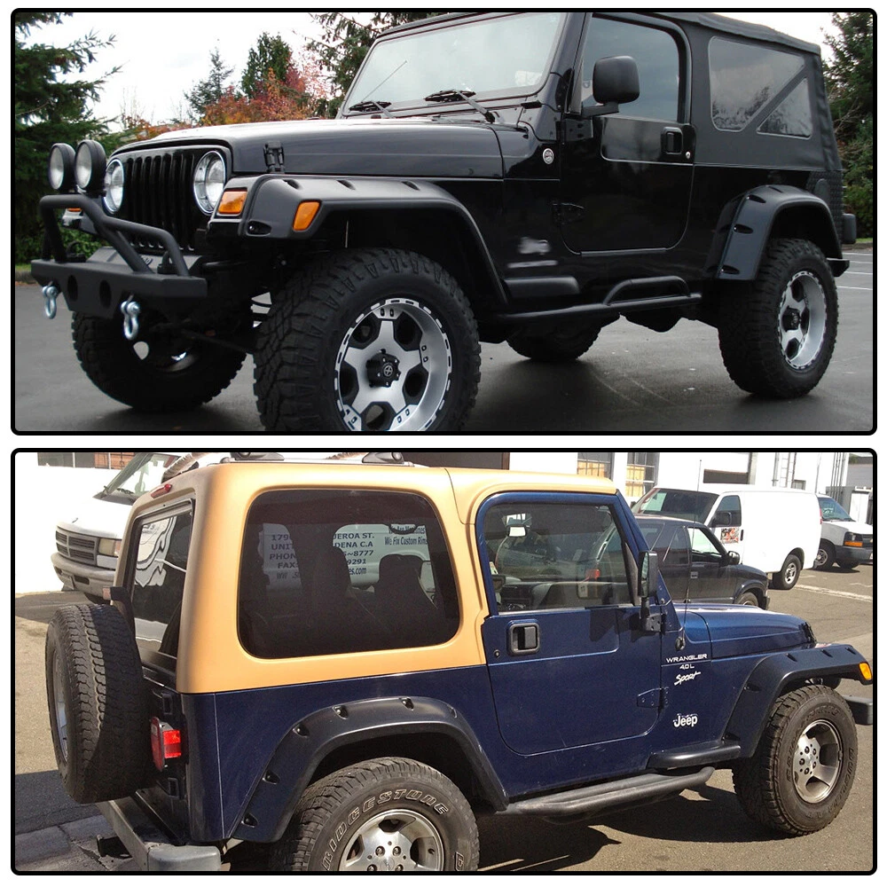 AUTOMOTO PRODUCT Fit For 1997-2006 Jeep Wrangler TJ Pocket Extended Fender Flares Kit Black 6pcs Product Introduction Title: Wheel Fender Flares Set Application: 1997~2006 Jeep Wrangler TJ(will not fit sport sport utility models) 2004-2006 Jeep Wrangler Unlimited LJ This wheel eyebrow is not suitable for tires of 33" and above! Color: Black Description: Direct fit(minor drilling may be required for some models) Made of high quality polypropylene with paintable smooth finished High quality injection moulding fender flares with smooth and precise edge cutting finis h Flexible, Shatter resistant,perfectly contour to wheel wells Cover up existing scratches,add a rugged off-road exterior look Protect wheel wells from mud,scratches,sand and other outer damage Necessary hardware like screws,seal strips included Package Includes: Set of 6 Wheel Fender Flares Hardware Note: All of the items in our shop will come to you with the tracking number. Visit shop home WELCOME to our ebay shop CONTACT US We Open 7 Days A Week ABOUT US ABOUT US: Welcome to GPLUS's eBay Store. We specialize in aftermarket automotive car parts and is the #1 industry distributor for affordable and quality products. Welcome to GPLUS's eBay Store. We specialize in aftermarket automotive car parts and is the #1 industry distributor for affordable and quality products. Welcome to GPLUS's eBay Store. We specialize in aftermarket automotive car parts and is the #1 industry distributor for affordable and quality products. SHIPPING Shipping Information All items will ship within 24 hours (Monday - Friday). Payment cleared/received on Friday will be shipped on the next business days (Monday or Tuesday). We are not responsible for carrier transit time. This information is provided by the carrier and excludes weekends and holidays. Note that transit times may vary, particularly during peak periods or in climate weather conditions, and that delivery times frames will need to be extended for any processing time frames in excess of 1-2 business days. excess of 1-2 business days. International Shipping: International buyers are responsible for possible customs fees, brokerage fees or duty fees. We would appreciate for understanding of tracking number would not be updated in between the city of departing in the U.S. and the city of destination. ATTENTION Cargo transportation Double check shipping address. We are not responsible for incorrect or undeliverable addresses. Please use Shipping & Payments tab on top of page for shipping details for your location. Transaction will be held until a full shipping amount received. Shipping address Some of the packages cannot be delivered to a PO Box. Customer is responsible to ensure PO Box address given is deliverable by the shipping company. Package will be held until a valid physical address is provided. Customer assumes shipping charges incurred in shipping to undeliverable address. Customs duties International buyers are responsible for all customs duties, taxes, and other applicable fees incurred by the country's customs/border regulations. Please contact customs for more information. We are not responsible for any changes to address after item has been shipped. RETURN please notify us within 30 days after you've received your purchased item. Return Policy: Buyers pay for return shipping fee. Items to be returned must be in resalable condition.14 Days money back, please notify us within 14 days after you've received your purchased item. If your order has been received and it is not what you ordered, or if your item has a manufacturer defect, please contact us within 14 days from delivery date. And you must contact us to request an Return Merchandise Authorization Number (RMA). No return package will be accepted without a valid RMA number. All products are covered by our warranty against defects. EMAIL click here for questions All return requests must be submitted through your eBay account. Iterms and Condition For emissions related items, please check with your local jurisdiction for emission specific requirements before purchasing. All items do not come with installation instruction unless otherwise specified. If item is questionable, please consult your local professional/mechanic before making purchase.