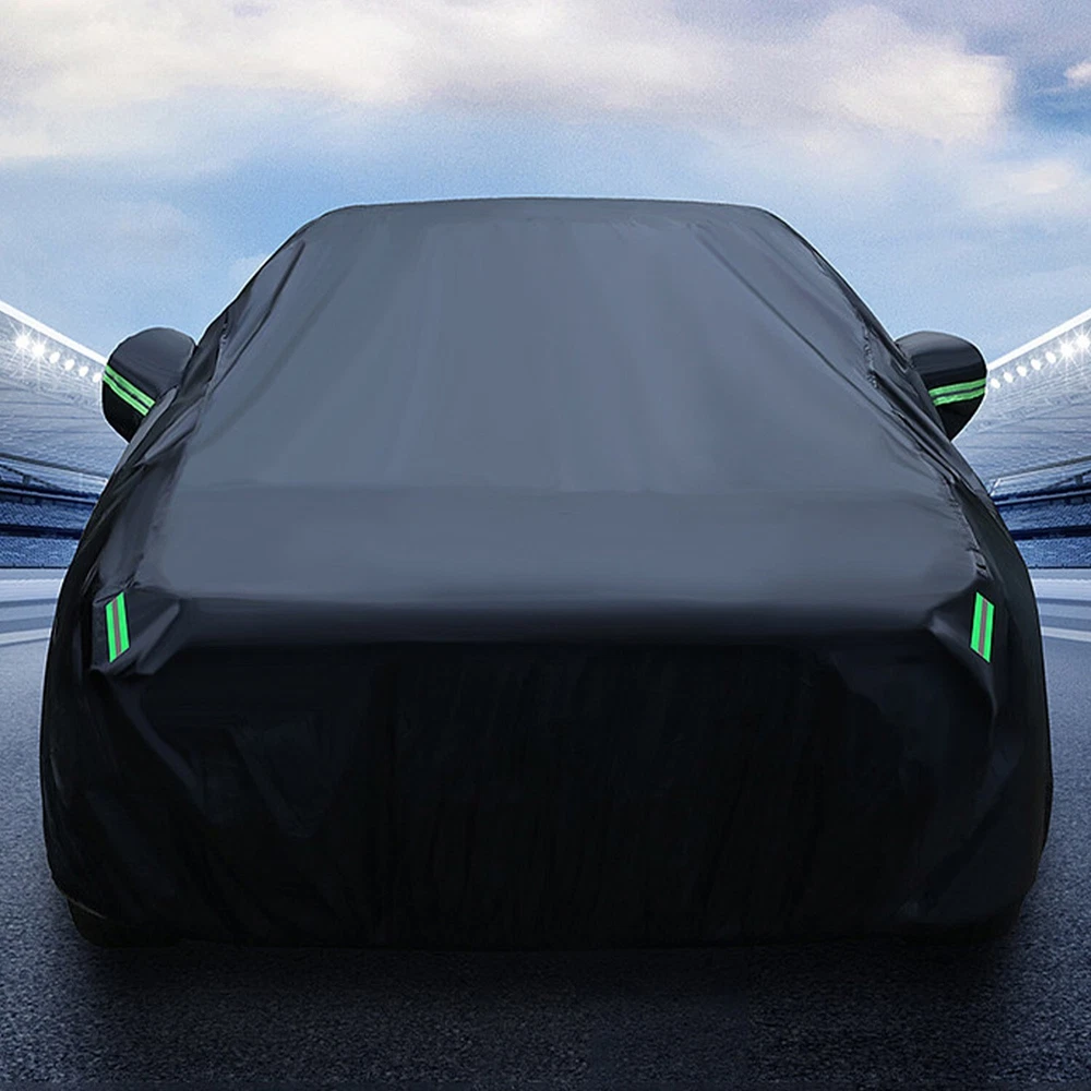 Feature: đăWeatherproof Full Protector Car Coveră Crafted from high density polyester taffeta with silver coating, the sturdy material is heat insulation, sun-proof, windproof, waterproof, hail-proof, snow-proof, dust-proof scratch resistant. đăReflective StripsăThe 6 fluorescent reflective strips will shine at night to remind others away from the car and help you find the car quickly.With ear design for covering car mirrors. đăWindproof & Anti-scratchăDouble thread sewing,not easy to tear off;Elastic band,Windproof is stronger. đăUniversal Car CoverăThis Car Cover size is 193" L X 71" W X 59" H,. please actually measure your car size before purchasing. đăEasy InstallationăEasy to put on and off, adjustable straps with durable buckle at the bottom to protect your car cover in heavy wind from blowing off. Specifications: Type: Full Car Cover Size: 193*71*59" Color: Black Material: 190T Polyester Taffeta Note: In Different Years, The Length Of The Car Is Different. Please Choose The Cover According To Your Car Length. Package include: 1 * Car Cover 1 * Storage Bag