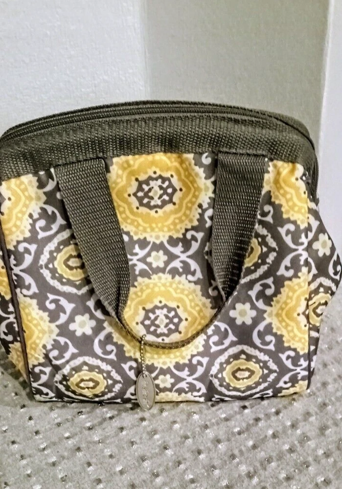 This Fit & Fresh Smart Style insulated lunch tote/purse is perfect for teens who want to keep their lunch fresh and organized. It features a unique abstract pattern and purse shape, with a grey, yellow, and white color scheme that adds a touch of Christmas spirit. The tote bag is made of 100% polyester material, making it durable and easy to clean. With a capacity of a full lunch and drink, this tote bag is perfect for everyday use or for special occasions. It comes with a handle for easy carrying and is expandable for extra room. The tote bag is also reusable, making it an eco-friendly choice for lunchers. Whether you're looking for a stylish and practical lunch container or just a unique accessory, this Fit & Fresh Smart Style insulated lunch tote/purse is a great choice.