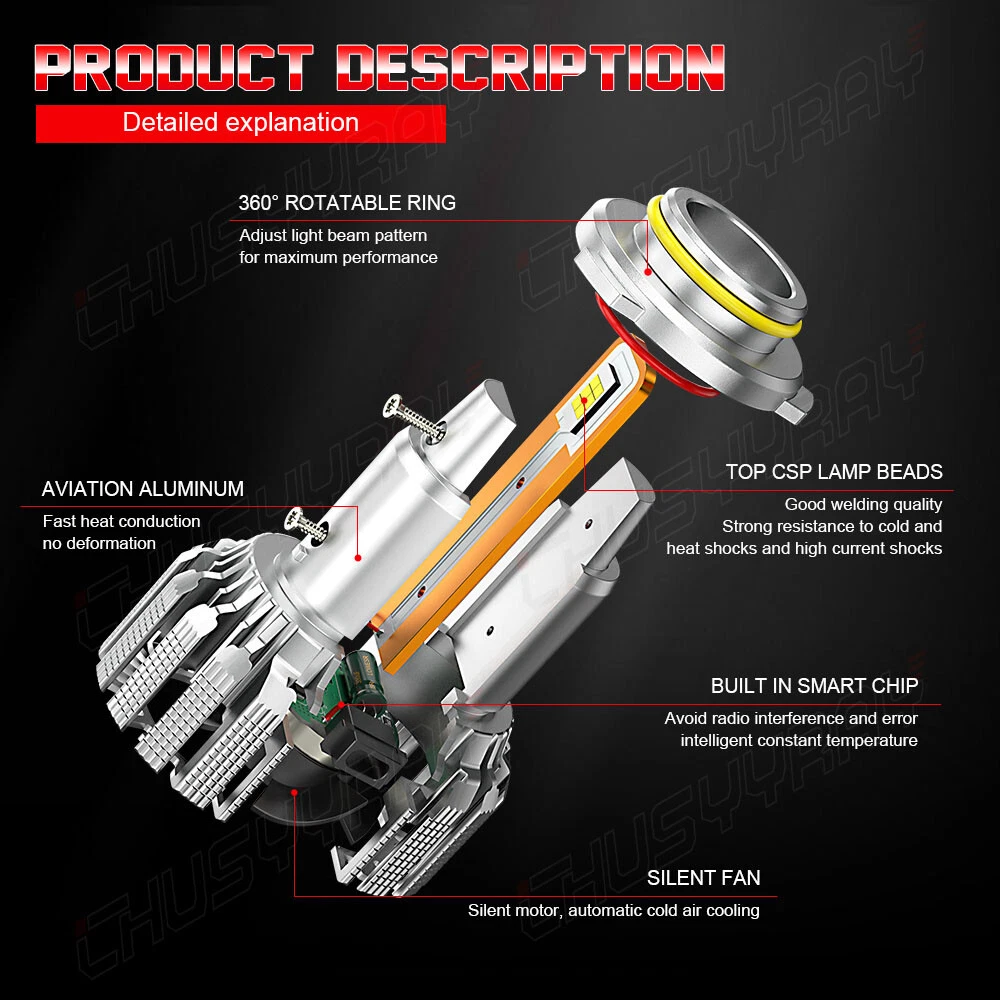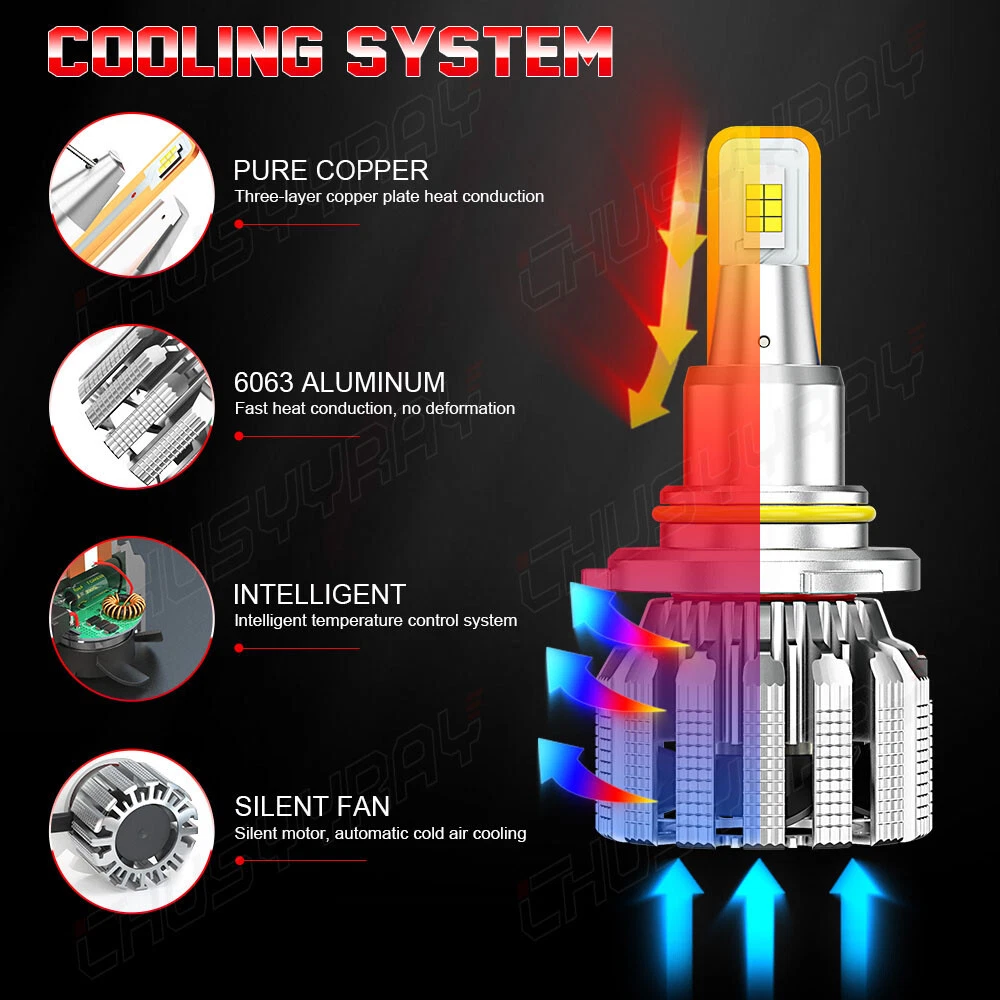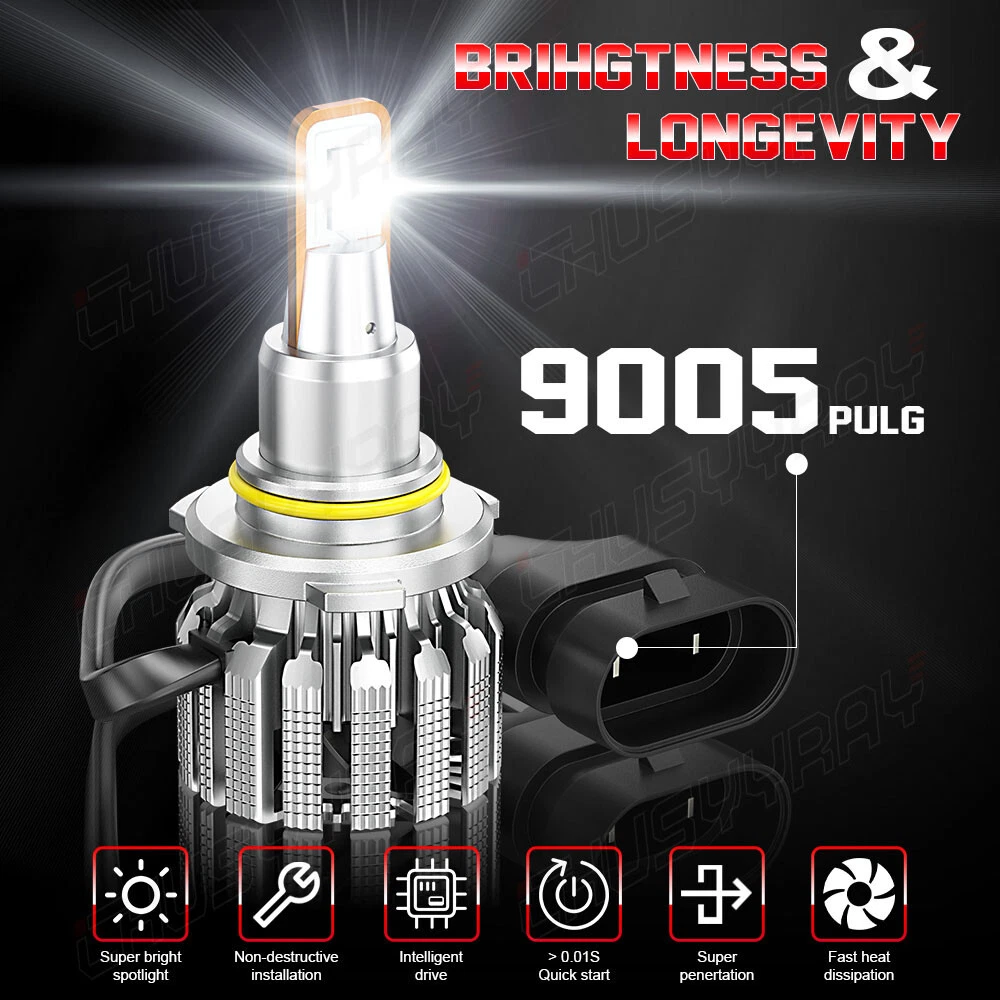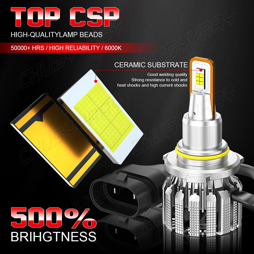 Product Parameters: Light source: 3570 Material: Aviation Aluminum Working Voltage: 9-23V Color temperature: 6000K Lumen: 10000LM Life: 50000 hours Working environment: -40℃~80℃ Waterproof grade: IP67 Product Performance: 1)SUPER BRIGHT 3570 LED CHIP 0.5mm thinnest LED spacing,the shorter the distance the better spotlight,super focused beam design,no dark spot. 2)ROTATABLE DESIGN Removable collar ring,you can now adjust the beam angle to a perfect one.Fit for 98% headlamp covers on market 3)COOLING SYSTEM,FOUR WAYS HEAT DISSIPATION Copper heat conduction;Evaporation from aviation aluminum;Polyhedral grid;Built-in turbo fan,silent and high speed. 4)IP67 WATERPROOF DESIGN For the most extreme conditions,with explosion-proof,shockproof,hign temperature hign pressure and other charateristics. 5)Small outer diameter, easy to install, high brightness, very concentrated, and fast heat dissipation. 6)Wider and further illumination areas than halogen lamp,300% brighter than traditional halogen lamps. 7)White light source, easy to accept by human eyes, will not feel tired Package Included: 2x LED 9005/HB3 headlight bulbs high beam 2x LED 9006/HB4 headlight bulbs low beam 2x LED H11/H8/H9 foglight bulbs New and old packaging will be shipped randomly Information: If you are unsure the item fit or not , please do remember send message to tell us your car make, model, year and other information which is helpful to check the item fit or not. For example: For 2004 Ford F150, high/low beam For 2015 RAM 1500 with projector-type, high beam For 2019 Ford F150 ,XL Crew Cab Pickup 4-Door 2.7L Notice: 1.The product must be installed by professionals. Please disconnect the car battery before installation. Please check the wiring after installation. 2.Please reserve enough space in the headlight housing for installtion and heat dissipation. All our products are manufactured under the strictest quality control. If the project is not functioning properly, please contact us by email first. If you have any questions, please contact us in time.