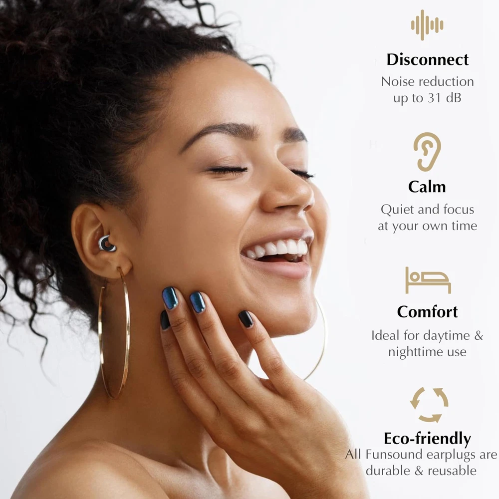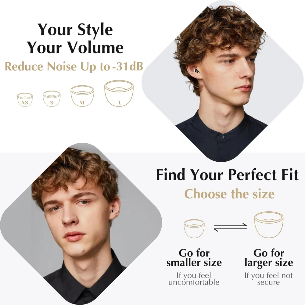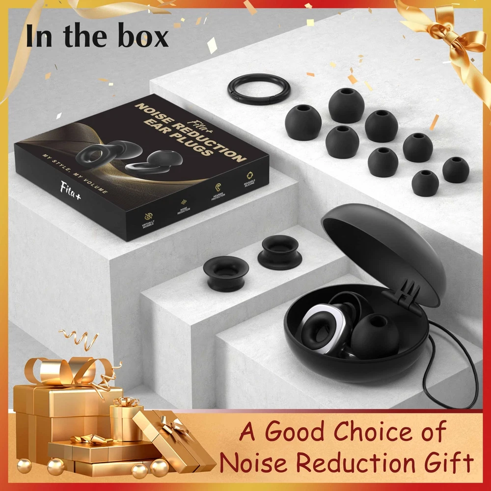 PREMIUM PROTECTION, SUPERIOR COMFORT: Experience the best of both worlds with our silicone earplugs. Unlike wax and sponge ear plugs, our silicone & ABS earplugs offer comprehensive functionality, combining comfort, durability, and effective noise reduction for an unparalleled ear protection experience. MORE NOISE REDUCTION, LESS DISRUPTION: Enjoy uninterrupted peace with our noise reduction ear plugs, featuring a remarkable noise reduction capability of up to 31dB. Whether you're in a bustling office, traveling on a noisy plane, or simply seeking tranquility at home, our earplugs ensure a quiet environment conducive to focus and relaxation. TAILORED FIT FOR ALL EARS: Say goodbye to discomfort with our ear plugs' four pairs of soft, reusable silicone ear tips in XS, S, M, and L sizes. Designed for ultimate comfort and versatility, they provide a customized fit for every ear shape and size, allowing you to wear them all day with ease. ENDLESS USAGE POSSIBILITIES: From studying in a noisy environment to attending concerts or getting a restful night's sleep, our ear plugs are your go-to solution for noise reduction in any scenario. Perfect for students, travelers, musicians, and anyone seeking tranquility amidst the chaos of daily life, our ear plugs offer versatile protection and comfort for all occasions. PLEASE NOTE:Fita + earplugs mainly block unwanted noise and reduce the heard volume, but they are not completely silent. While blocking noise, it is breathable, balances the pressure difference between the inside and outside of the ear. You can hear voice of others with the earplugs in. You can wear earplugs under the earmuffs or helmet for added protection.