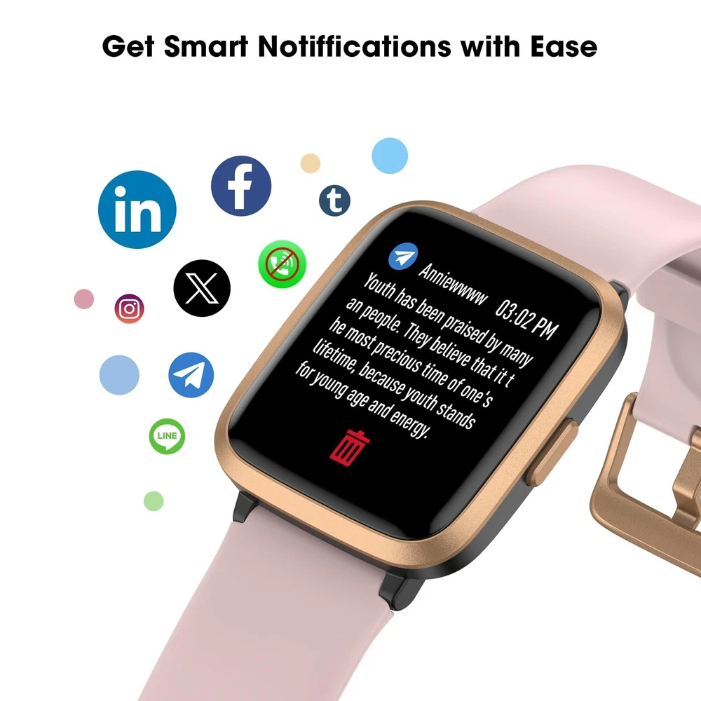 Heart Rate and Sleep Monitoring : The Fitness Tracker monitors your heart rate automatically all day, and you can select manual mode through the App. The fitness Watch also monitors your sleep at night, providing a detailed analysis of your sleep quality (deep sleep, light sleep, awake time). It is a health advisor for women men in daily life. Multi Sport Modes with Activity Tracking : The fitness tracker features 11 sport modes like running, walking and more. Additionally, the activity tracker records daily steps, calories burned, walking distance and active time throughout the day. You can also set a daily steps goals through the App to track your progress. Smart Notification Reminder : You can get incoming calls, SMS messages, and SNS notifications directly on your wrist including Facebook, Twitter, Gmail ect. You won't miss any important calls and message and stay updated. Please note: the smart watch can not make calls or text. Long Battery Life and IP68 Waterproof : This smart watch only requires 2 hours of charging and can be used for 5-7 days continuously. IP68 waterproof rating can withstand daily sweat, washing hands and rainy day, allowing you to fully enjoy your workouts. More Functions & Compatibility : Fitness watch comes with multiple smart functions such as stopwatch, alarm clock, breathing guide and sedentary alert, enhancing convenience to your daily routine. The tracker is compatible with iPhone Android Phones which run on iOS 8.0 or Android OS 4.0 & Bluetooth 4.0 or above. Please note that it is not compatible with tablets or computers. Reminders for You : The fitness tracker watch operates by touch button, NOT touch screen. To enhance your wearing comfort, please do not wear the watch too tightly to avoid excessive friction that may cause skin abrasion. Make your watch a rest after prolonged use. Heart Rate Monitor The smart tracker will monitor your heart rate in real time or manually, and you can view detailed data clearly in App, helping you to learn about your physical state. Note: The result cannot be considered as a medical grade test Sleep Monitor The fitness tracker monitors your sleep status automatically (light sleep, deep sleep and awake time) which help you develop healthy sleep habits. Note: the sleep data only view in the App. Multi-Sport Modes Our fitness watch comes with 9 different sports modes like walking, running, ect, and the fitness tracker watch can track your steps, distance, calorie automatically. when connected with your smartphone's GPS, the pedometer watch can track your outdoor workout route. 5ATM Waterproof Watches With 5ATM waterproof, the fitness watch is suitable for daily wash hands, rain, sweat resistance and swim, allowing you to enjoy sports to the fullest. Notifications from Sport Watch Notifications reminders ensure that you will not miss any important things while you are busy. Please note: the smart watch can not make calls or text. Breath Training Breath training can be provided to help balance your stress level and relax your body immediately.