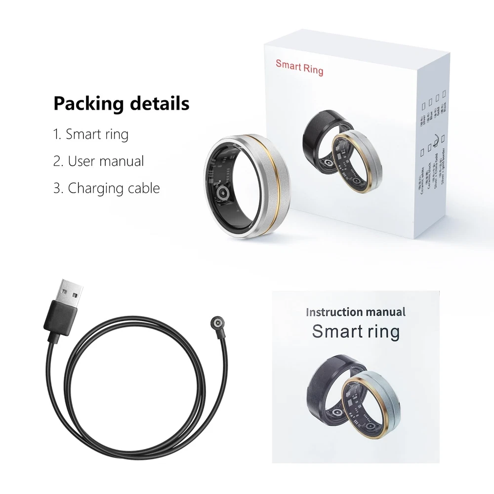 Item Shape:RoundWeight:0.14 PoundsDisplay Size:1.0Band Material:Does not applyBatteries Required?:YesCompatible Devices:Smartphonesgtin13:Does not applyMaterial:Stainless SteelUPC:Does not applyTarget Audience:Unisex AdultsType:Does not applySize:Us 8Brand:Does not applyCase Size:Does not applyModel Number:Tul-H01Included Components:Smart Ring, Charging Cable, User ManualCompatible Operating System:Does not applyStyle:ClassicModel:Does not applyBattery Weight:0.5Package Dimensions LxWxH:3.46x3.23x1.06 InchesColor:Silver With Middle GoldModel Name:H01 Smart RingBatteries Included?:YesImport Designation:ImportedNumber Of Lithium Ion Cells:1