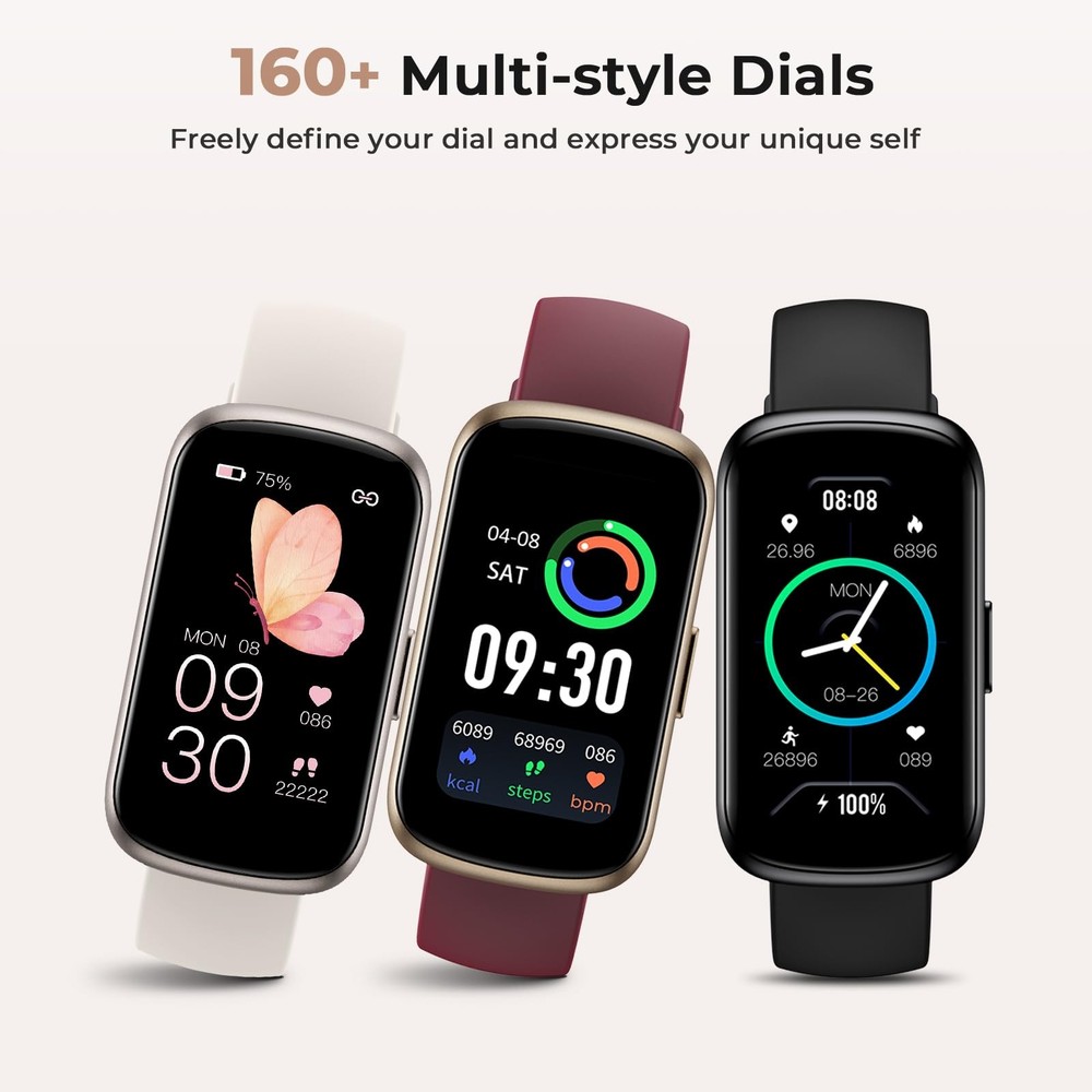 Health Digital Butler - Take care of your all-round health This health tracker smart watch for women incorporates advanced health monitoring technology to protect your health in all aspects. It has all-weather heart rate monitoring, blood oxygen saturation detection, sleep monitoring and other functions to help you keep track of changes in your physical condition and provide personalized health advice to help you regulate your body and mind and maintain your best condition. Intelligent Sleep Management - Optimize your sleep quality The automatic sleep monitoring function not only analyzes your sleep status, but also provides professional sleep suggestions based on the data, such as adjusting your schedule, relaxation techniques, etc., to ensure that you get high-quality sleep and reshape your life vitality. Full Control of Sports Data - Unleash sports potential The fitness tracker for women has 24 sports modes. Whether you are jogging, swimming, cycling or high-intensity training, health watch can accurately record your steps, distance, calorie consumption and other data, helping you objectively evaluate training effects, optimize exercise plans, and make the most of your athletic potential. Stay Connected at All Times - Enjoy a smart life In addition to excellent health management functions, the activity & fitness tracker also supports smartphone message push, schedule reminders, weather forecasts, etc., allowing you to keep track of life dynamics and fully enjoy a convenient and smart life. Exquisite dial design, combined with personalized dial selection, makes your smart watch a fashionable item, showing your unique taste. Excellent Waterproof Performance and Battery Life - Accompany you every moment The fitness watches for women has a 3ATM waterproof rating, which not only resists daily rain and hand washing, but also supports light water activities such as swimming in the pool, so you don't have to worry about damage to the fitness tracker. The excellent battery life can provide 10-20 days of daily use, and the battery can be quickly fully charged in just 1.5 hours, allowing you to explore the boundless life. Whether you are pursuing health management, sports data analysis, or smart life experience, this step tracker watch for women will become your indispensable digital butler and fashion accessory. Let us start a new chapter of healthier and smarter life together! Comprehensive Health Insights: This fitness tracker for women and men can accurately capture heart rate and blood oxygen fluctuations and automatically track sleep time. You can better understand your body's dynamics and take targeted health care measures Full Control of Sports Data: This fitness watch for women supports multiple sports modes, covering almost all daily sports. It can accurately record the time, distance, calories and other data of each exercise, allowing you to exercise more effectively Efficient Information Management: Whether it is a mobile phone text message or a social notification, the smart watch will receive and display it on the surface screen in real time, so you can grasp all kinds of information in time with just one glance More Convenient Functions: The 1.47" smart watch for women has more than 160 dials for you to choose from. It also integrates many practical functions, such as menstrual cycle tracking, alarm clock, etc., making your life smarter and more convenient Excellent Water Resistance: The activity tracker has a 3ATM waterproof rating, which can easily resist water splashes providing you with a safe and reliable use experience. It supports you to use it in washing hands, rainy days and other occasions Strong Battery Life: This step counter watch for women men can be fully charged in just 1.5 hours, can last for 7-10 days with all-day wear, and up to 30 days on standby. The watch does not need to be charged frequently, so you can easily manage your time Wide Compatibility: This step tracker watch is compatible with iOS9.0 and above & Android 4.4 and above, and can match most mobile phones. You can get rid of the cumbersome pairing process and enjoy a seamless experience