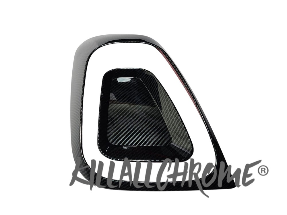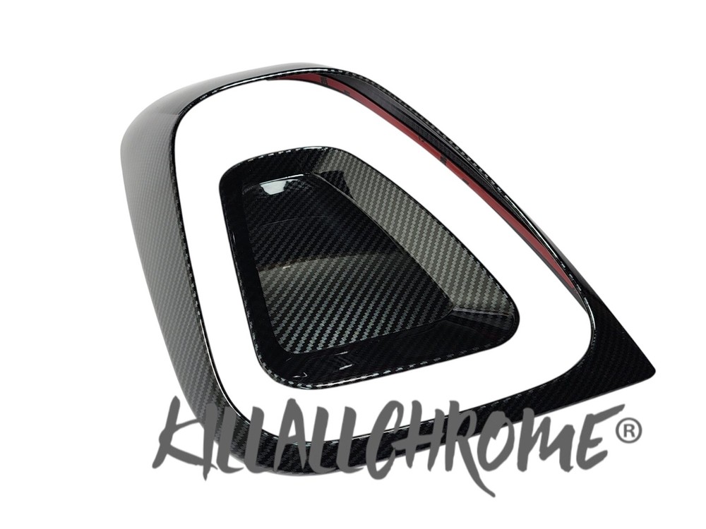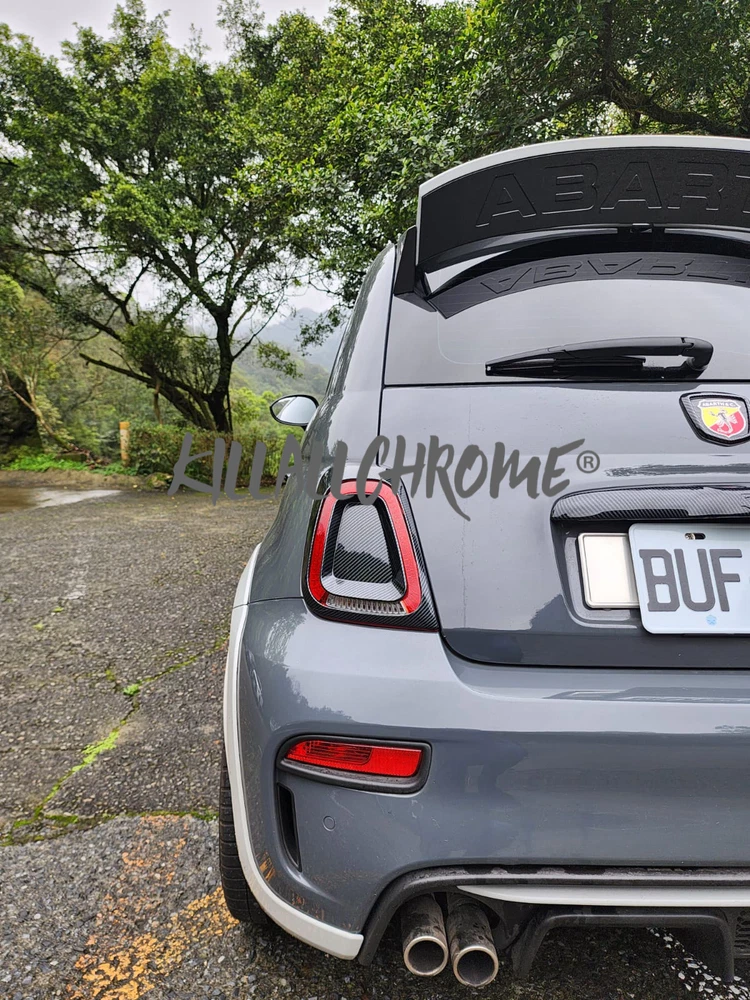 Kill All Chrome - Mini Bitz Your Abarth Journey has only just begun Fiat 500 / Abarth 595 Rear Light Surrounds + Inserts 4 Piece These install with 3m tape so super easy to fit and transforms the look of your tail lights This listing includes 4 pieces, 2 outer light surrounds and 2 inner light inserts Made from a high quality ABS plastic for long lasting durability in Carbon Fibre Look