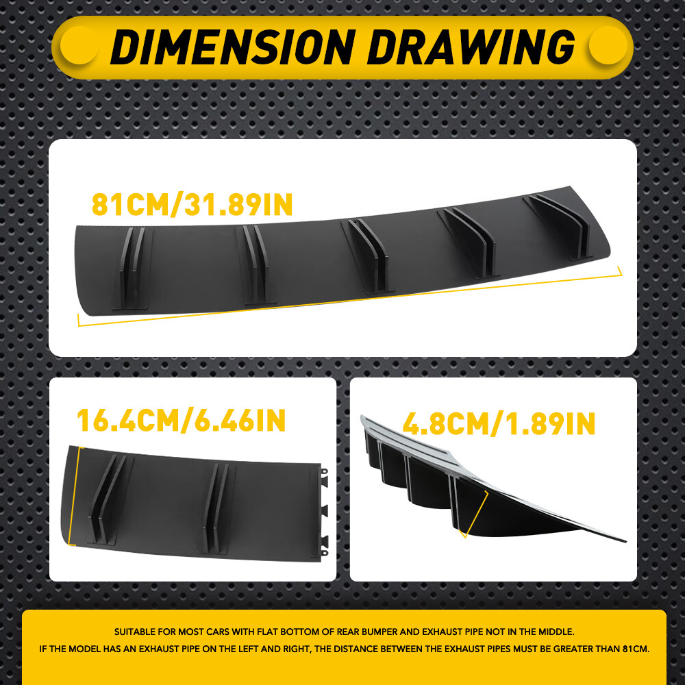 Fit for: Suitable for most cars with flat bottom of rear bumper and exhaust pipe not in the middle. If the model has an exhaust pipe on the left and right, the distance between the exhaust pipes must be greater than 81cm. Specifications: Product Material: ABS Color: Matte black (as pictures show) Placement on Vehicle: Lower, rear Features: 【Reduce Air Resistance???/span> This shark fin diffuser designed to increase a vehicle's aerodynamic performance and improve the stability of vehicle during fast driving. 【Excellent Appearance???/span> Fits CTS Cadillac XTS Matte Black Rear Bumper Diffuser Fins Lip Splitter Spoiler Fit for: Suitable for most cars with flat bottom of rear bumper and exhaust pipe not in the middle. If the model has an exhaust pipe on the left and right, the distance between the exhaust pipes must be greater than 81cm. Specifications: Product Material: ABS Color: Matte black (as pictures show) Placement on Vehicle: Lower, rear Features: 【Reduce Air Resistance???/span> This shark fin diffuser designed to increase a vehicle's aerodynamic performance and improve the stability of vehicle during fast driving. 【Excellent Appearance???/span> Shark fin and clean lines design with beautiful appearance to decorate your car, which gives your vehicle a more aggressive racing look. 【ABS Material???/strong> Made of ABS material with high-quality, waterproof, durable functions and will not easy to break. 【Universal Fit???/span> Universal fit for most cars, please measure the size before purchasing. Note: Please confirm the size and make sure that there is enough space to install before purchasing!!! Professional installation is required. Packaging Include: 1 x Rear Shark Fin Bumper Diffuser 1 x Screws kit 1 x Double sided adhesive tape Item Specifics Material : ABS Mounting Hardware Included : Yes Placement on Vehicle : Lower Rear Brand : AUXITO Color : Matte black (as pictures show) Type : Rear Bumper Lip Warranty : 5 Years Number of Pieces : 1 Fitment Type : Direct Replacement Attachment Method : Screws Payment (1) Instant PayPal payment is the preferred method of payment. (2) We also accept payment via PayPal, DebitCard, Visa, MasterCard, Discover. (3) We will only ship to the confirmed PayPal shipping address given with the payment. (4) If you want to ship to other address, please change your PayPal shipping address before you make payment. (5) To avoid initiating an unpaid item claim, please pay within 7 days. Shipping (1) We will ship your item(s) within 24 hours. (2) We ship this item to US usually via USPS first class mail. It usually takes 3-6 working days to deliver. Returns (1) We offer free return & money back guarantee. If you are not satisfied with your purchase for any reasons, you can return the item for refund or replacement/exchange. All returns must include the original packaging. (Please refer to our return policy for details.) (2) If you don't return goods within 60 days from date of purchase, your right to cancel will be revoked. Any items damaged because of incorrect installation will not be refunded. Please contact us for return or troubleshooting help prior to returning any products. (3) Unauthorized reselling of AUXITO products is strictly prohibited and we can't honor the warranty if purchasing from the unauthorized reseller. Contact Us [Our office hours are MONDAY - Saturday 9:00PM - 6:00PM PST, but we will response you once we get your message .There will be some delay on respons if you send message or E-Mail on Sundy.] (1).Negative feedback will not help resolve any problems you have, please contact us via eBay messages before leaving negative feedback, our customer service will make best effort to help you with the issues. (2).We maintain high standards of excellenceand strive for 100% customer satisfaction! Feedback is very important to us. We request that you contact us immediately BEFORE you give us neutral or negative feedback, so that we can satisfactorily address your concerns. FAQ Why swith to LED? LEDs not only give your vehicle a clean, modern look but, with proper use, will outlast any halogen bulb and HID bulb! Low energy draw, high lumen output, and instant on/off LED technology out shines stock bulbs in every way. Which bulbs are used in my vehicle? Check Sylvania automotive lamp replacemnt guide, you can select the year, make, and model of your vehicle, then select the application you want to replace or upgrade from stock. What does CAN Bus mean? CAN Bus means Controller Area Network Bus. This system monitors your vehicle and reports operating conditions. CAN Bus systems are commonly found in European vehicles such as BMW, Audi, Mercedes, Volkswagen, Porsche, and in many American vehicles. While most late model American vehicles have CAN Bus systems, it is always good to check with your vehicle dealer to see which system your vehicle has before purchasing electrical products. When do you need Warning Canceller? Some vehicles with cmplex internal computers(such as Audi,BMW,Jaguar,Mercedes,etc.) might report on-dash errors or flickering on the headlights. The warning canceller fixes the dashboard warning and flickering effect. Bulb Out Dashboard Error: On some vehicles, the dashboard will report as if you have a headlight bulb missing or burnt. It does not affect the headlights functioning, but the light on-dash will be on. The warning canceller fixes the issue. Flickering Issue: This happens when your vehicle does not recognize the new headlights installed. When turning the headlights on, the vehicle's computer does not understand the signal back from the headlights hence thinking they are still off. This triggers the headlight flickering effect. The warning canceller solves this issue. LED Advantages: Very low and efficient energy consumption than halogen bulbs & HID Bulbs Compared with HID bulbs, LED bulbs Light up instantly, no warm up period Low voltage protection, high precision constant current driver chip Longer lifespan tha