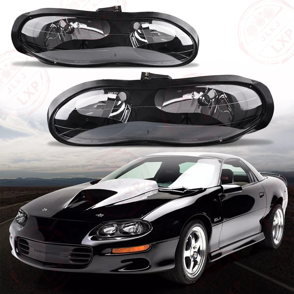 Feature High quality generic branded lights that are identical to OEM lights. Safety and Durable. DOT/SAT approved for street legal. Safety & Fashion. High grade ABS plastic. For toughness, impact resistance, and heat resistance. Condition: 100% Brand New and High Quality Material: ABS Plastic Housing / Polycarbonate Lens Color: Black Housing + Clear Lens High Beam Bulb Type: HB3 9005 (bulb NOT included) Low Beam Bulb Type: HB4 9006 (bulb NOT included) Fit for: for 1998-2002 Chevy Camaro Packing list: 1 Pair of Headlights (Driver & Passenger Side)