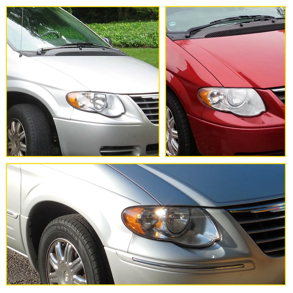 Headlight Style: Reflector Waterproof: Yes Model: For Town & Country Van 4-Door Automotive lighting systems: Dual Beam Headlights systems Quantity: 2 Manufacturer Part Number: DYH128735LIGHTS Universal Fitment: Yes Headlights Lightning Type: Reflector High & Low Beam UPC: Does not apply Light Color: Warm White Type: Headlight Assembly Attention 1: Fits models with 119" long wheel base only Mounting Style: Screws Housing Color: Chrome Applicable Regions: US Voltage: 12 V Reflector Color: Amber Items Included: No Bulbs Vintage Part: Yes Components Included: Lens & Housing Assembly Type: Composite gtin13: Does not apply Mounting Hardware Included: No Features: DOT-Certified, Reflector Housing, SAE-Certified, Sealed Assembly Placement on Vehicle: Front, Left, Right Lens Color: Clear Attention 2: Do not fit models with 113'' wheel base Manufacturer Warranty: 1 Year Bulb Shape Code: Please Use Stock Bulbs OE/OEM Part Number: CH2502152, CH2503152, 4857991AB, 4857990AB Lighting Technology: Halogen Brand: AUXITO Color Temperature: 6000K Ballast Included: No Dust and Moisture Protection: Yes Packaging include: Driver & Passenger Side Headlights Assembly Performance Part: Yes Headlights Material: ABS, PC, PMMA Finish: Smooth Fitment Type: Direct Replacement Certifications: DOT, SAE Lumens: 10000 lm