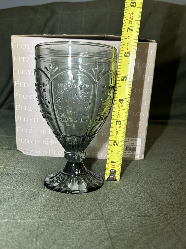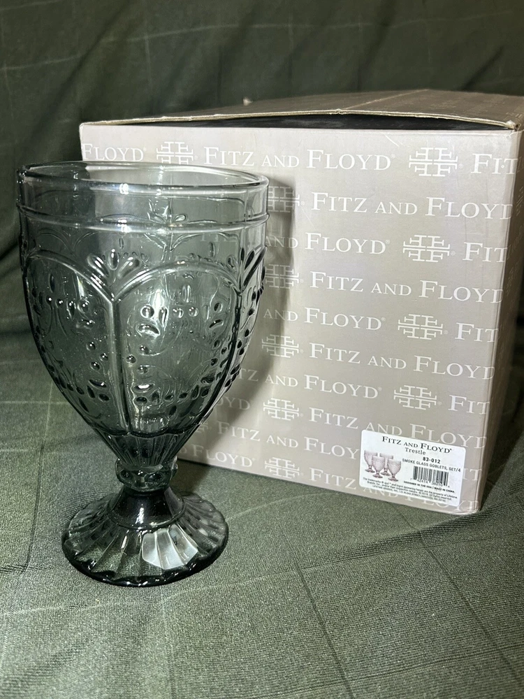 Fitz and Floyd Trestle Glassware Ornate Goblets, 4 Count Smoke Grey