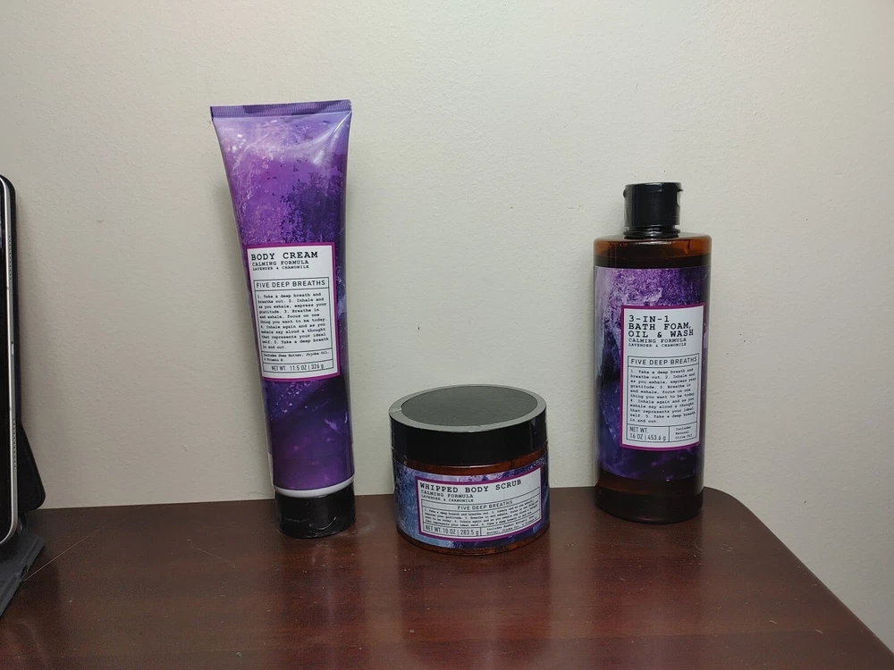 HomeFive Deep Breaths Lavender & Chamomile Body Cream, Bath Foam, Whipped Scrub New