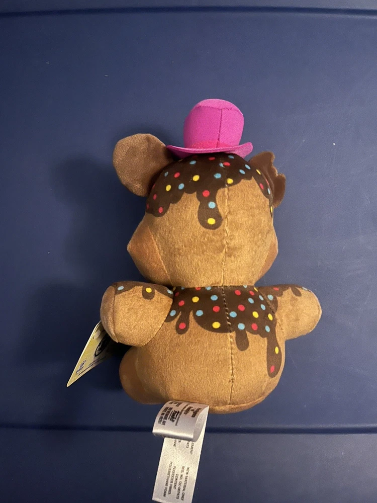 This Five Nights at Freddy's plush toy is a must-have for any fan of the franchise. The plushie features Candy Freddy, also known as Chocolate Freddy, in his 1:10 scale. It comes in its original packaging, which is new and tagged. This exclusive plushie is part of the FIVE NIGHTS AT FREDDYS FUNKO PLUSH series and was manufactured in Vietnam in 2021. The plushie is made of high-quality brown plush material and is an original and licensed reproduction. It is perfect for collectors and enthusiasts alike, and would make a great addition to any collection. The plushie is not vintage, personalized, or signed, and is suitable for all ages. Get your hands on this special delivery Candy Freddy plushie now! Fnaf five nights at Freddy’s