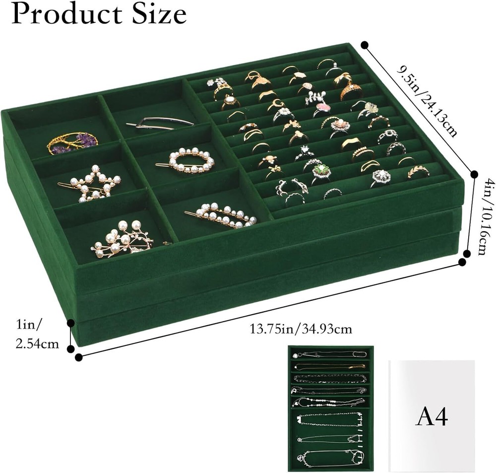 Fixwal 13.8in Jewelry Organizer Trays, Large Stackable Jewelry Tray for Drawers, Jewelry Storage for Earring Ring Necklace Bracelet Watch with Removable Divider, Dark Green, Set of 3 Color Dark GreenBrand FixwalMaterial fabricStyle BSpecial Feature StackableRecommended Uses For Product RingProduct Dimensions 9.5"D x 13.75"W x 1"HTarget Audience WomenShape RectangularOccasion Wedding, Christmas, Birthday Fixwal 13.8in Jewelry Organizer Trays, Large Stackable Jewelry Tray for Drawers, Jewelry Storage for Earring Ring Necklace Bracelet Watch with Removable Divider, Dark Green, Set of 3 Color Dark Green Brand Fixwal Material fabric Style B Special Feature Stackable Recommended Uses For Product Ring Product Dimensions 9.5"D x 13.75"W x 1"H Target Audience Women Shape Rectangular Occasion Wedding, Christmas, Birthday × × × × Buy now and save! Shipping info Click the Shipping & Payments tab above the listing description for more info Click the Shipping & Payments tab above the listing description for more info! Additional delivery notes PICK UP OPTION Sorry, our items are NOT available for pick-up. PAYMENT Immediate payment is required upon selecting "Buy It Now" or upon checking out through the cart. We accept payment via U.S. PayPal accounts and all Major Credit Cards, Debit Cards & Google Pay. We are legally required to collect sales tax in those states and localities where we maintain a physical presence (nexus). The applicable amount of sales tax charged to an order will be calculated based on the shipment destination's state and local sales tax laws. Thank you for shopping with us on eBay! Additional Information No additional information at this time Ask seller a question You might also like Jingle all the Way! 4.5" Square Shadow Box Rite Lite 2 pack wooden Dreidel Rite Lite The Dreidel Game Chanukah Painted Wooden Dreidels Set of 4 - Hanukkah Aurora Marius Nutcracker Bear Blue Contact To contact our Customer Service Team, simply click the button here and our Customer Service team will be happy to assist. Ask seller a question © Morning Glory Resale Shipping & Payments Click the Shipping & Payments tab above the listing description for more info Payment Accepted Payment Methods Immediate payment is required upon selecting "Buy It Now" or upon checking out through the cart. We accept payment via U.S. PayPal accounts and all Major Credit Cards, Debit Cards & Google Pay. We are legally required to collect sales tax in those states and localities where we maintain a physical presence (nexus). The applicable amount of sales tax charged to an order will be calculated based on the shipment destination's state and local sales tax laws. Thank you for shopping with us on eBay! Returns Returns are not accepted Seller will pay for return shipping. eBay integration by