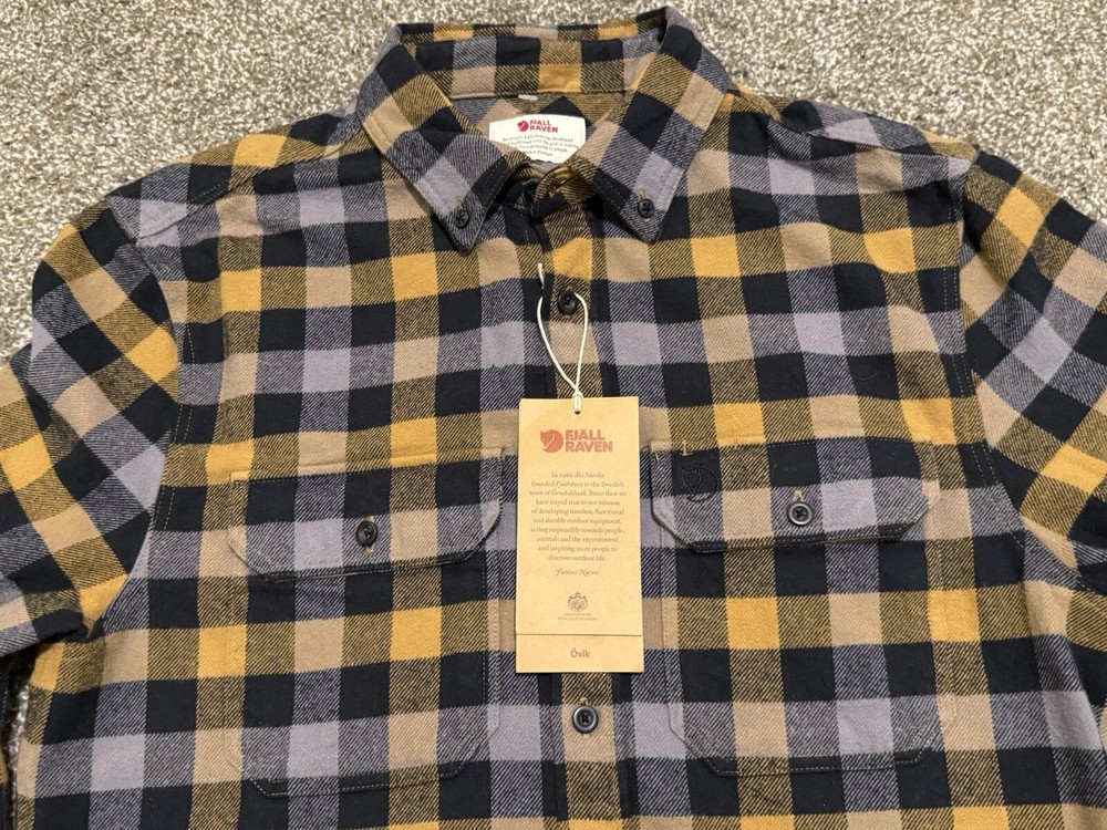 Upgrade your activewear with the Fjallraven Outdoor Clothing Skog Flannel Shirt in a stylish Buckwheat Brown/Black colorway. This shirt is perfect for outdoor activities like walking and hiking, with features like a slim fit, stretch material, and pockets for convenience. The button closure and long sleeves make it a comfortable and practical choice for any adventure. Crafted from high-quality flannel fabric and originally priced at $120, this shirt is a must-have for any outdoor enthusiast. The shirt is a size medium and is part of the Skog product line. Whether you're hitting the trails or running errands, the Fjallraven Outdoor Medium Skog Flannel Shirt Mens is the perfect addition to your wardrobe.