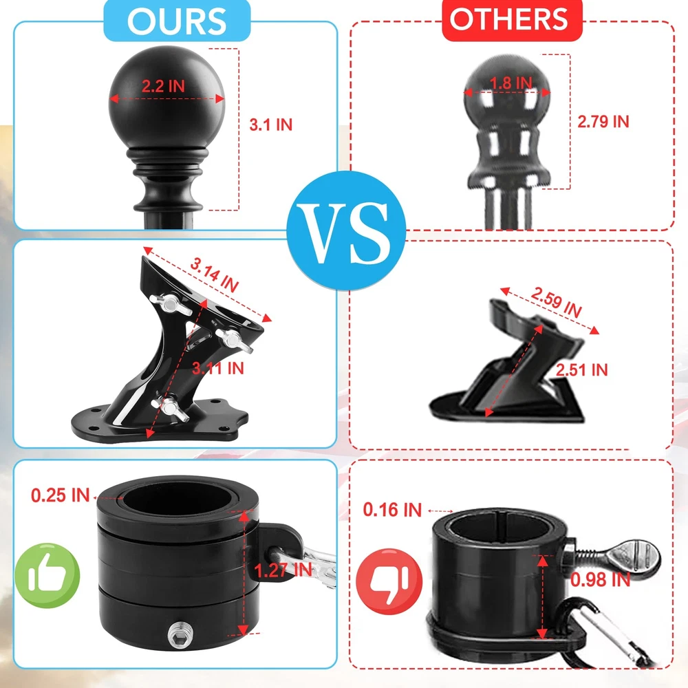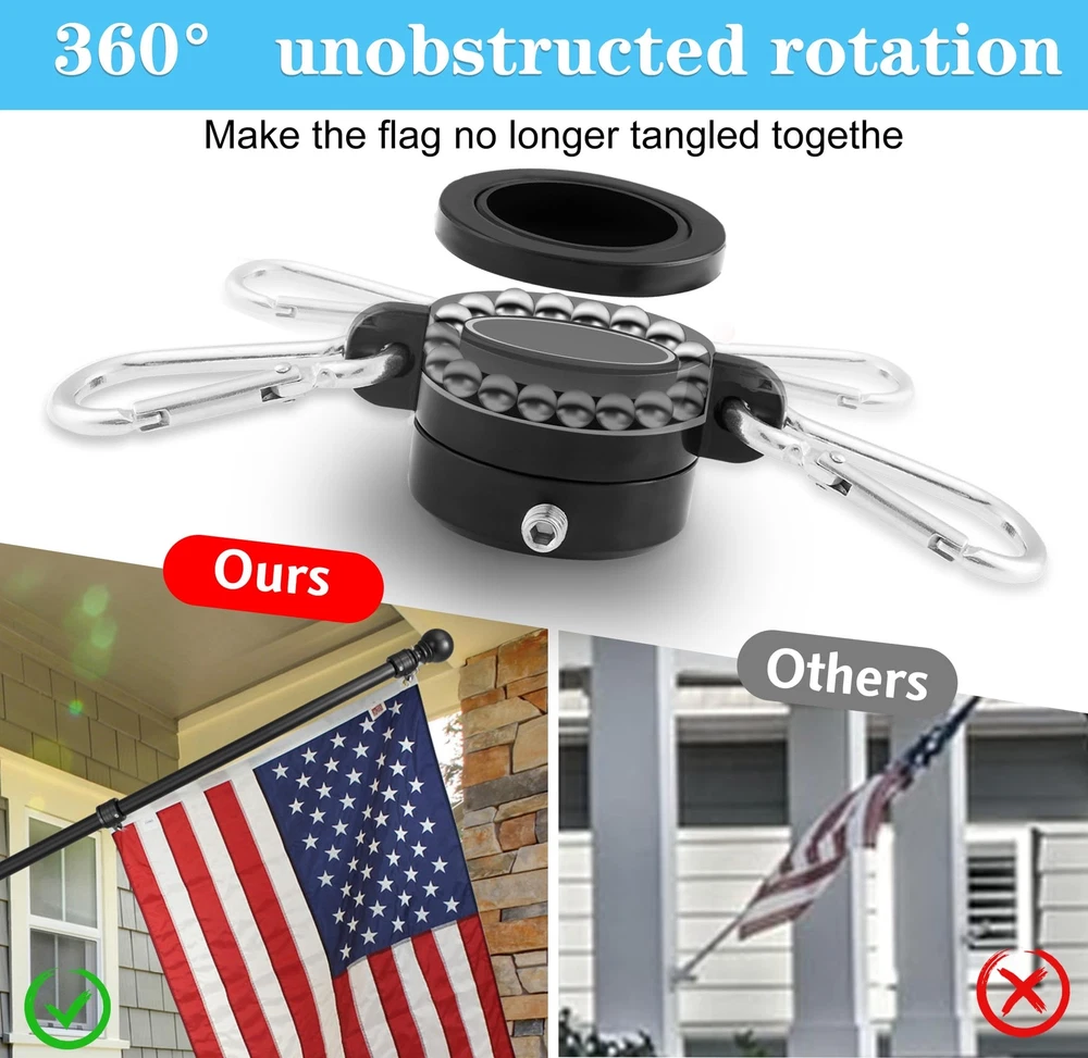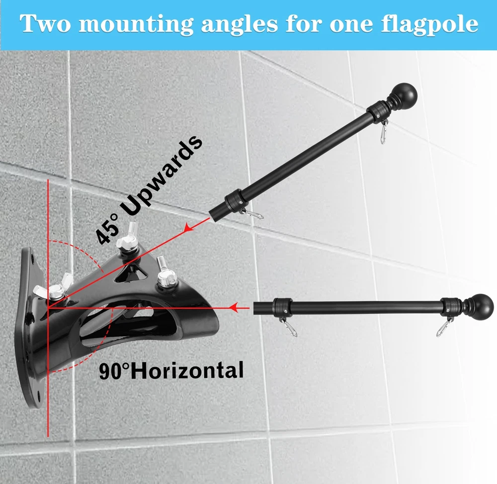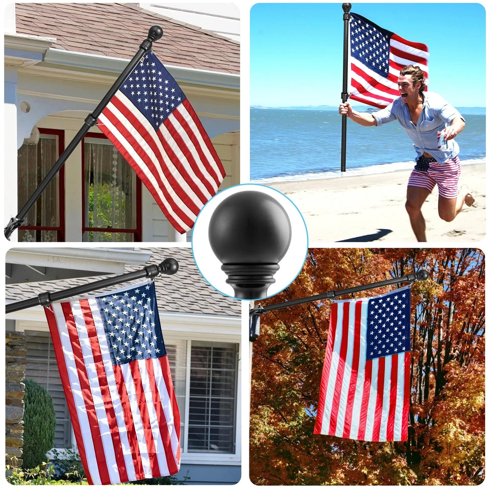 Splice Design: The flagpole is spliced and assembled by threaded connector, it is easy to disassemble and assemble, convenient to carry and save space. Includes 3x5 Embroidered American Flag, 2 small handheld flags. Anti-Trangle Design: specially designed flag rings, which can be rotated 360°, allow the flag to fly in the wind without getting tangled on the flagpole, and you can also install different sizes of flags by adjusting the distance between the rings. Dual Position Holder: The flagpole holder has been designed with positions (90°and 45°) to allow for horizontal flag hanging, or the flagpole can be mounted tilted upwards at 45°. 4 fixing holes are designed on the flagpole holder to make the flagpole more solid. Of course it can also be fitted with a tail end cap to hold it in your hand. Strong And Durable: 1-inch thick diameter and high quality alloy material make the flagpole stronger, rust-resistant and can withstand all-weather outdoor environment. Suitable for Many Scenes: The flagpole comes with holders that can be mounted on walls, roofs, suitable for houses, porches, decks, garages, and patio decorations.