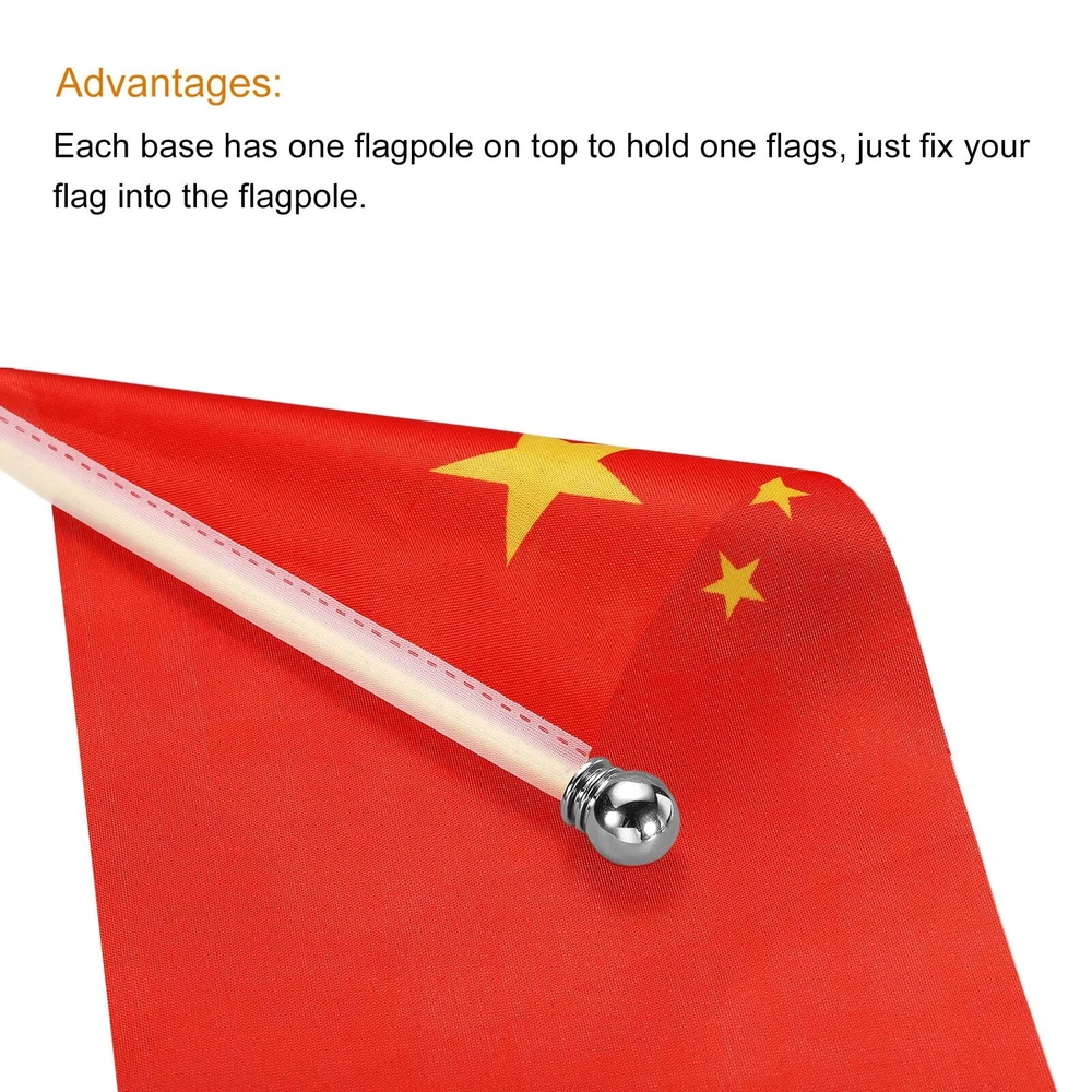 The flag stand is made of a zinc alloy base, to hold your mini flags stand on your desk. Base Size: 70mm x 20mm/2.75 inch x 0.79 inch(D*H); Flagpole Height: 300mm/11.8 inch; Flag Size: 140mm x 210mm/5.51 inch x 8.27 inch(W*L); Color: Silver Tone. Great for table centerpieces, party supplies, and table decoration, make your table environment more elegant. Each base has one flagpole on top to hold two flags, just fix your flag into the flagpole. The size is measured manually, please allow the error +/-0.1 inch before purchasing.