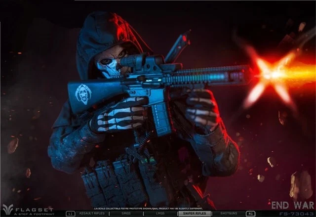 Material: ABS Scale: 1/6 Box Contents: - Body - Heads - Fertilizer lining - Tactical top - Tactical pants - Cloak - Body armor - Triple Rifle Magazine Jacket - Walkie Talkie Case - Tactical Pistol Set - Rifle - 4 Rifle magazines - Pistol - Pistol magazine - Dagger set - Dagger - Sickle strap - Sickle - Skeleton Gloves - Belt - Walkie Talkie - Tactical headset - 6 Changeable hands - Boots - Safety buckle - 2 Light sticks - Rifle sight A - Rifle sight B - Rifle Grip - Bracket