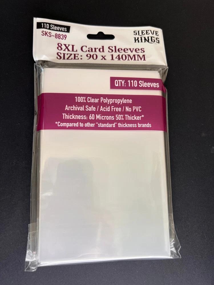 This is all the sleeves for the game Flamecraft (8803 X 2 + 8839 X 1) *Thicker than any other "Standard" Sleeves- Most "Standard Sleeves are 40 microns thick, a few are even 50 microns. Ours are 60-microns thick! That is 50% more than most! *10% more sleeves than the other guys -Most sleeves come 100/pack. We are the only brand offering 110 per pack! 10% more FREE! Note we have calculated the number of packs for this bundle based on THIS page. ** Note Game Titles and their intellectual property rights are © and TM of their respective rights holders, no challenge to these rights is expressed or implied. Compatibility claims only extend to the physical size of the cards in each respective game and no claim to endorsement or authorization by the respective rights holders is expressed or implied by Sleeve Kings. Our products are compatible with the respective games only and all rights are reserved by the respective rights holders.