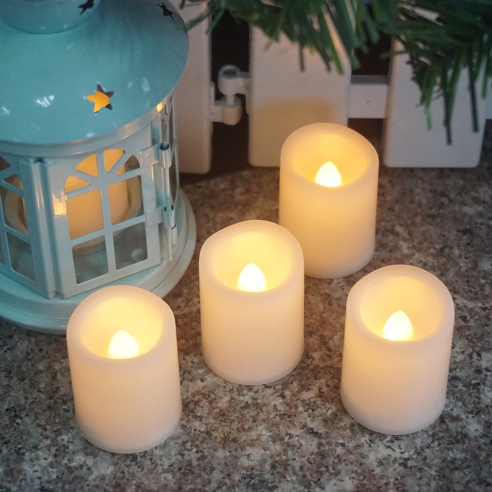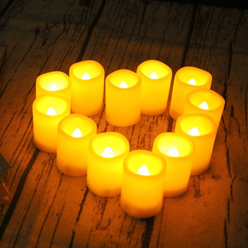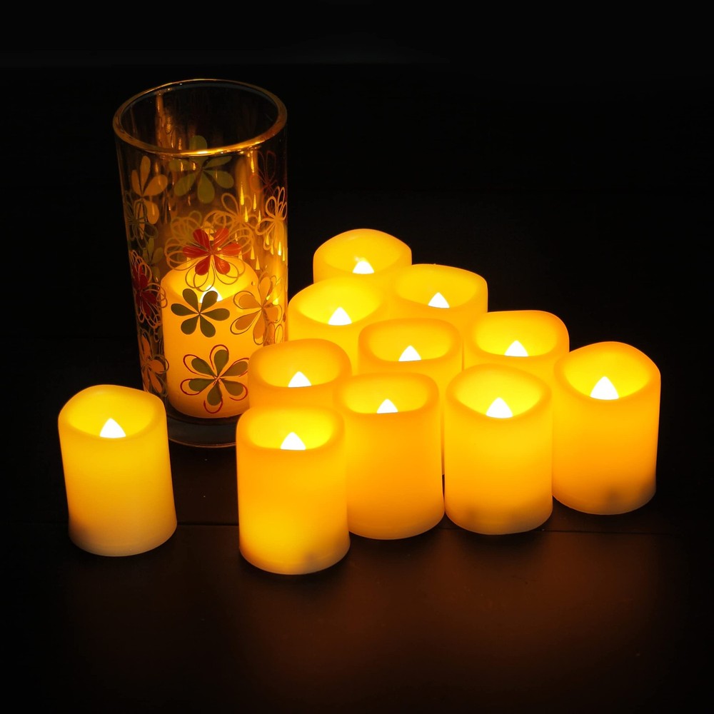Flameless Battery Operated LED Votive Tea Lights with Realistic Flickering Flame