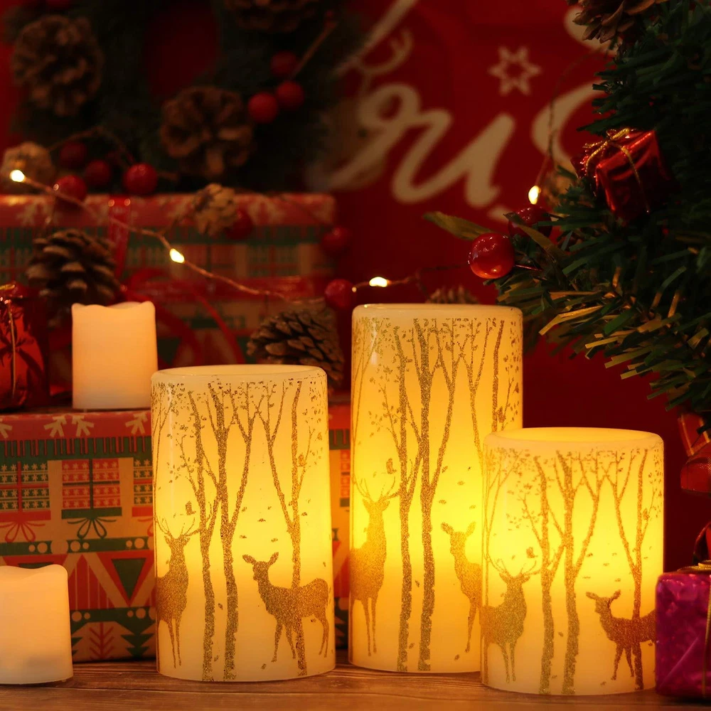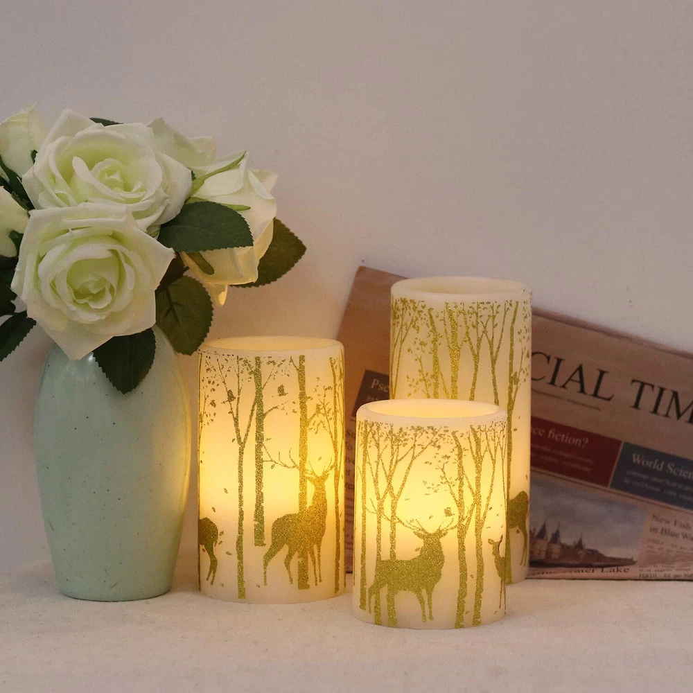 Flameless Candles Pillar: You will get 3 Ivory LED flameless candles(D3 inch x H4,5,6 inch)and a user manual.This LED candles all made of real wax with warm light and flickering Battery Operated Candles: Each pillar flameless candle requires 3 AAA batteries(Not Included), it can be widely used for Birthday, Christmas, Home, Banquet and Hotel Decoration, no flameless, safe for children and pets Timer Fuction: Bottom 3-way switch(ON/OFF/Timer), slide to the timer side, candles will light for 6 hours and automatically turn off, cycle every 24 hours Long-Lasting LED Candles: Every flickering candle can light for 500 + hours or two months (6H timer with advanced batteries), the lifetime of LED bulb is 50,000 hours Lifetime Warranty: Each flameless pillar candles through rigorous and thorough tests, If you are not satisfied, please contact us any time, we will offer free replacement