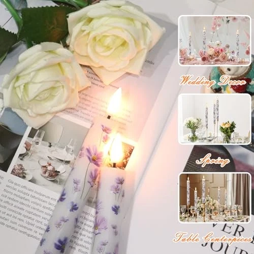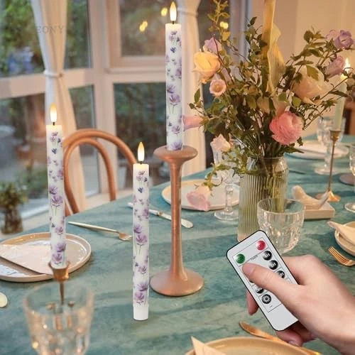 Return Policy Fast Delivery Trusted seller Purple Flowers Flameless Taper Candles with Remote Timer, LED Taper Candles Battery Operated Warm 3D Wick Flickering, Real Wax CandleSticks, Wedding Birthday Christmas Decor Product Description Charming Floral Accent: These flameless taper candles are adorned with beautiful purple flower designs, adding a touch of elegance and color to any decor, making them perfect for weddings, birthdays, or holiday celebrations Realistic 3D Flickering Effect: Featuring a 3D wick, these LED taper candles create a lifelike flickering flame, providing a warm, inviting glow that enhances the atmosp without the risks of open flame or wax drips Battery Operated for Safety: Powered by batteries, these flameless candles offer a safe, convenient alternative to traditional candles, ideal for homes, events, or settings w open flames are a concern Remote Control and Timer: With a remote control and timer function, you can effortlessly turn the candles on and off and set them to run for specific time intervals, providing added convenience and energy efficiency Versatile and Elegant Decor: Made with real wax exteriors, these taper candles are a versatile addition to any decor, adding a sophisticated and romantic touch to dining tables, mantels, or any festive occasion like weddings, birthdays, or Christmas Shipping Returns Payment Shipping Shipping is FREE to all addresses other than APO/PO boxes in the lower 48 states. All our stock ships from US-based warehouses. Shipped via USPS or UPS (depending on location and package weight) Unless stated otherwise, all orders will ship within 24-72 hours of your payment being processed. Check our feedback to see the great reviews of FAST shipping we offer. Returns Seller does not accept returns Payment We currently accept payment via eBay managed payments only. Once payment is cleared, we will dispatch your shipment within 1-3 business days. Please refer to the "Shipping" tab for more information regarding shipping speed to your destination.