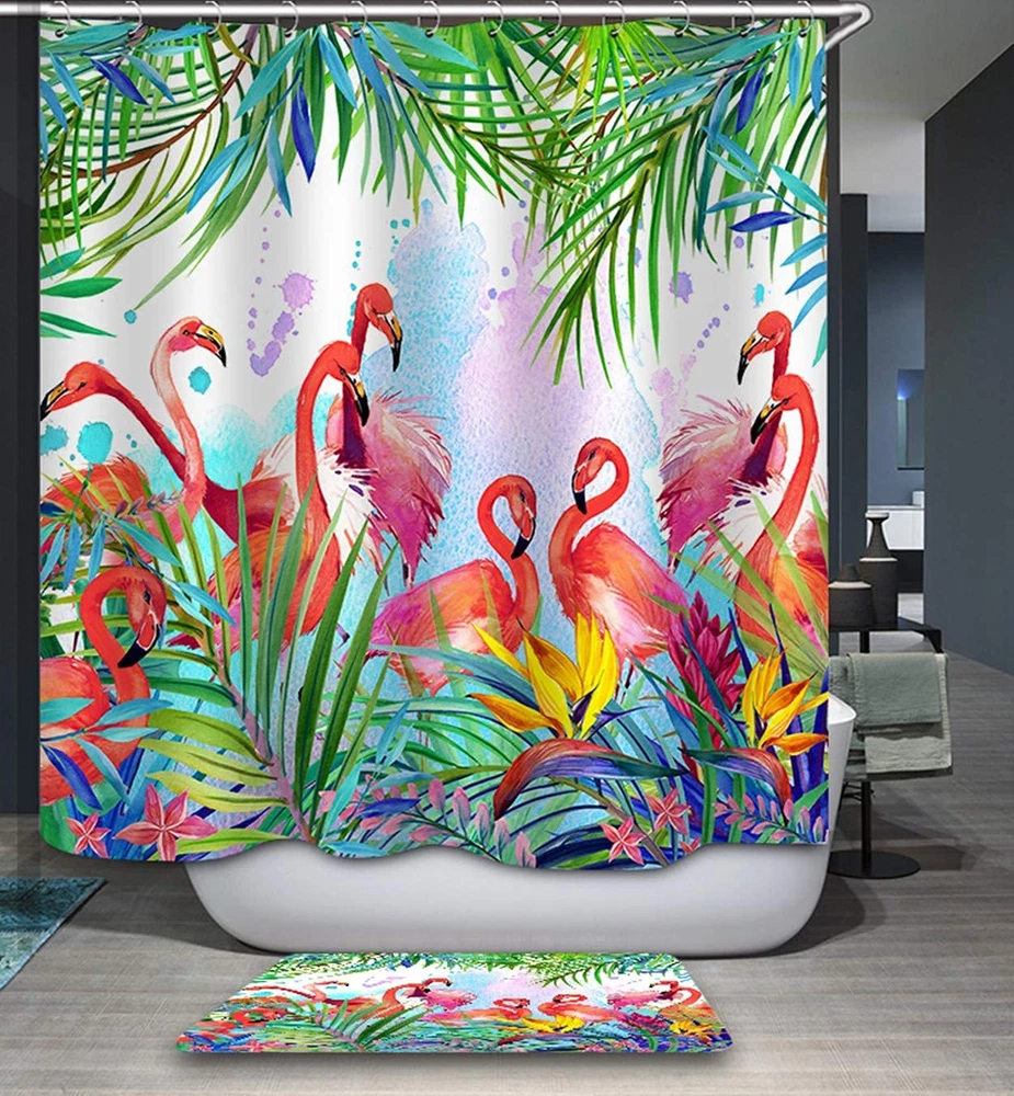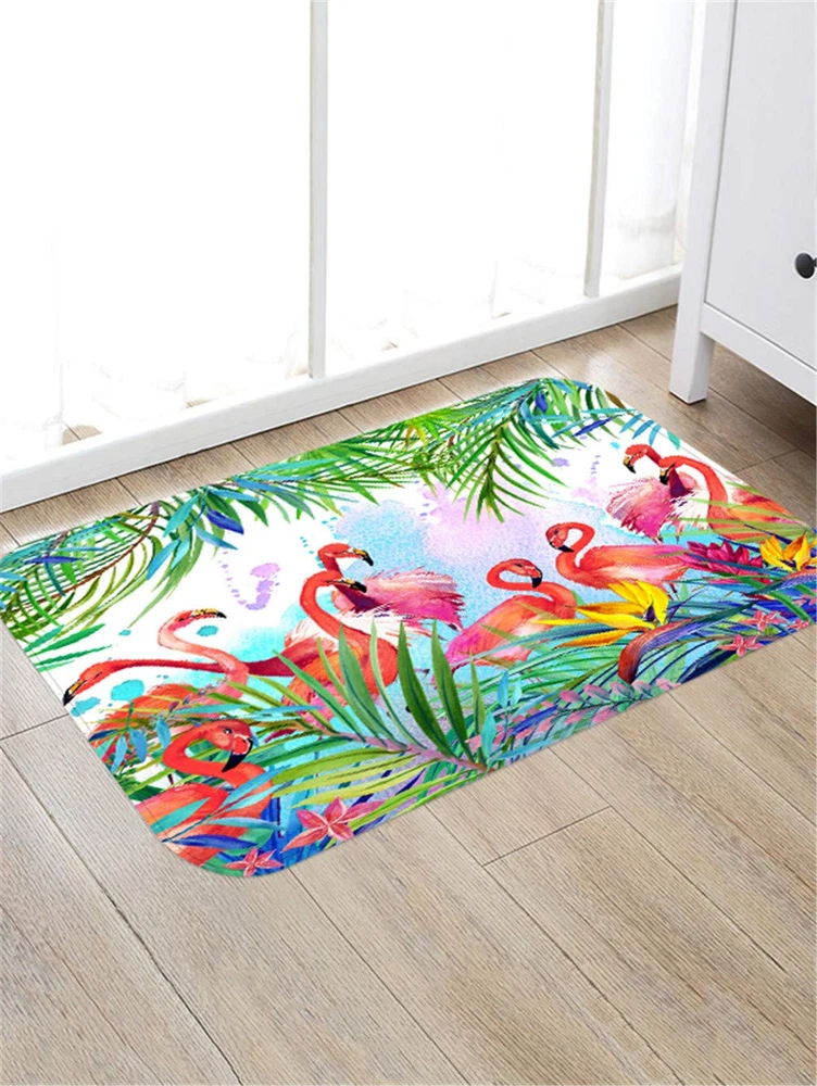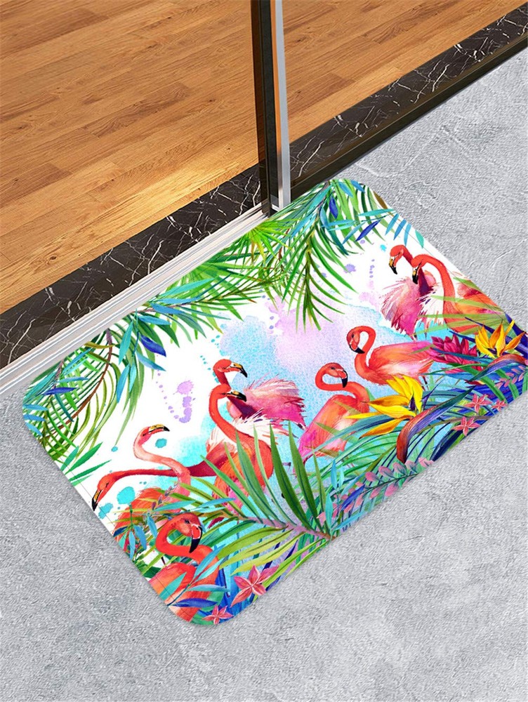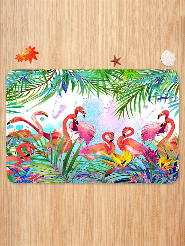 Flamingo bathroom rugs is a comfortable for bathroom, showers, bath tubs and kitchen Size: 24"(L) x 16"(W); soft touch on surface Absorb water quickly, machine washable Non-woven fabric top; anti-slip rubber back Great for all seasons