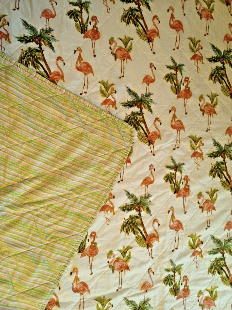 Theme:FlamingoSize:Full/QueenProduct Care Instructions:Machine WashEAN:Does Not ApplyMaterial Type:CottonItem Height:1Brand:Does Not ApplySeasons:AllType:Does Not Applygtin13:Does Not ApplyIncluded Components:Quilt, 2 Pillow ShamNumber of Pieces:3MPN:Does Not ApplyStyle Name:Playful