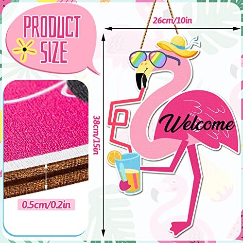 Return Policy Fast Delivery Trusted seller Flamingo Welcome Sign Wood Front Door Decor Summer Hanging Rustic Decor for Farmhouse Home Wall Porch Garden Holiday Decorations Supplies, 15 x 10 Inch Product Description Funny Flamingo Sign: this flamingo door hanger is designed with a funny flamingo who is wearing a red scarf and a hat, paired with bright colors and artistic [Welcome] to add more fun and relaxing to your summer home Size Information: the flamingo door sign measures approx. 38 x 26 x 0.5 cm/ 15 x 10 x 0.2 inches, and the large size is easy to attract people's attention and can well match and light most home doors Reliable and Sturdy: the flamingo signs are mainly made of quality wood, with vivid and clear printing, well polished and no burrs, not easy to break or fade, reusable and long lasting, which can bring you a nice use experience Easy to Use: the flamingo wooden sign is designed with a hanging rope, which you can directly hang on w t is a hook or nail (not included), saving your time and effort and convenient to use and remove Wide Applications: the flamingo porch sign can be applied to decorate your home door, bathroom, bedroom, restroom, hotels, office, front door, summer themed parties, Luau parties, Hawaii parties, and more Shipping Returns Payment Shipping Shipping is FREE to all addresses other than APO/PO boxes in the lower 48 states. All our stock ships from US-based warehouses. Shipped via USPS or UPS (depending on location and package weight) Unless stated otherwise, all orders will ship within 24-72 hours of your payment being processed. Check our feedback to see the great reviews of FAST shipping we offer. Returns Seller does not accept returns Payment We currently accept payment via eBay managed payments only. Once payment is cleared, we will dispatch your shipment within 1-3 business days. Please refer to the "Shipping" tab for more information regarding shipping speed to your destination.