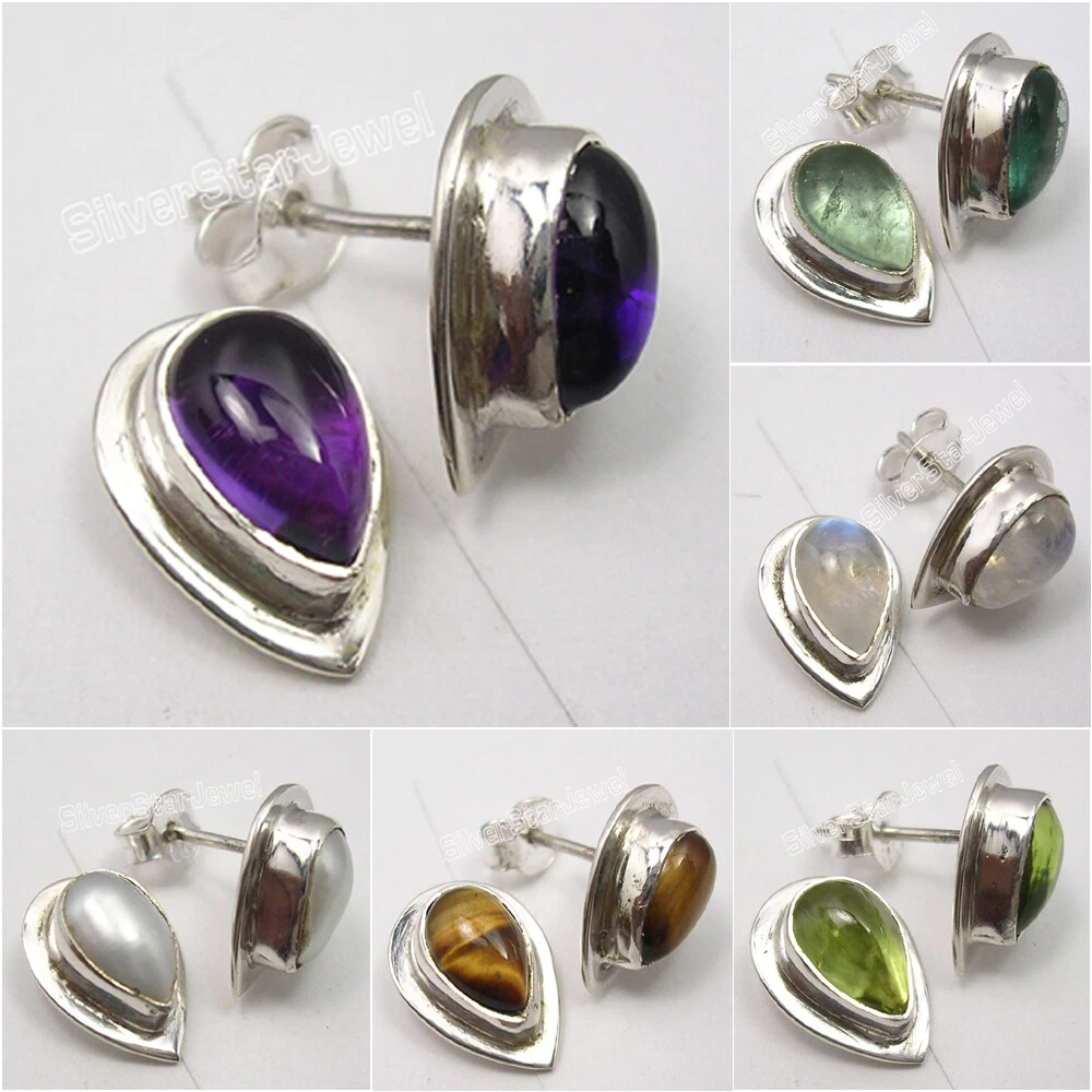 Jewelry Type: Earrings Metal: Sterling Silver Earrings Width: 10 mm (3/8 inches) Gemstone Size: 6x9 mm Drop Cabochon Country/Region of Manufacture: India Country of Manufacture: India Earrings Length: 13 mm (1/2 inches) Seller Notes: “Brand New Jewelry Article from SilverStarJewel” Gemstone Creation: Natural Brand: Handmade Metal Purity: .925 Sterling Silver Type: Earrings Style: Stud Earrings Weight: 3.4 Grams (Approx.) Occasion: Valentine's day Metal Stamp: 925
